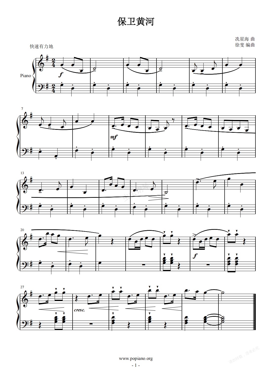 钢琴谱:《保卫黄河》川音三级