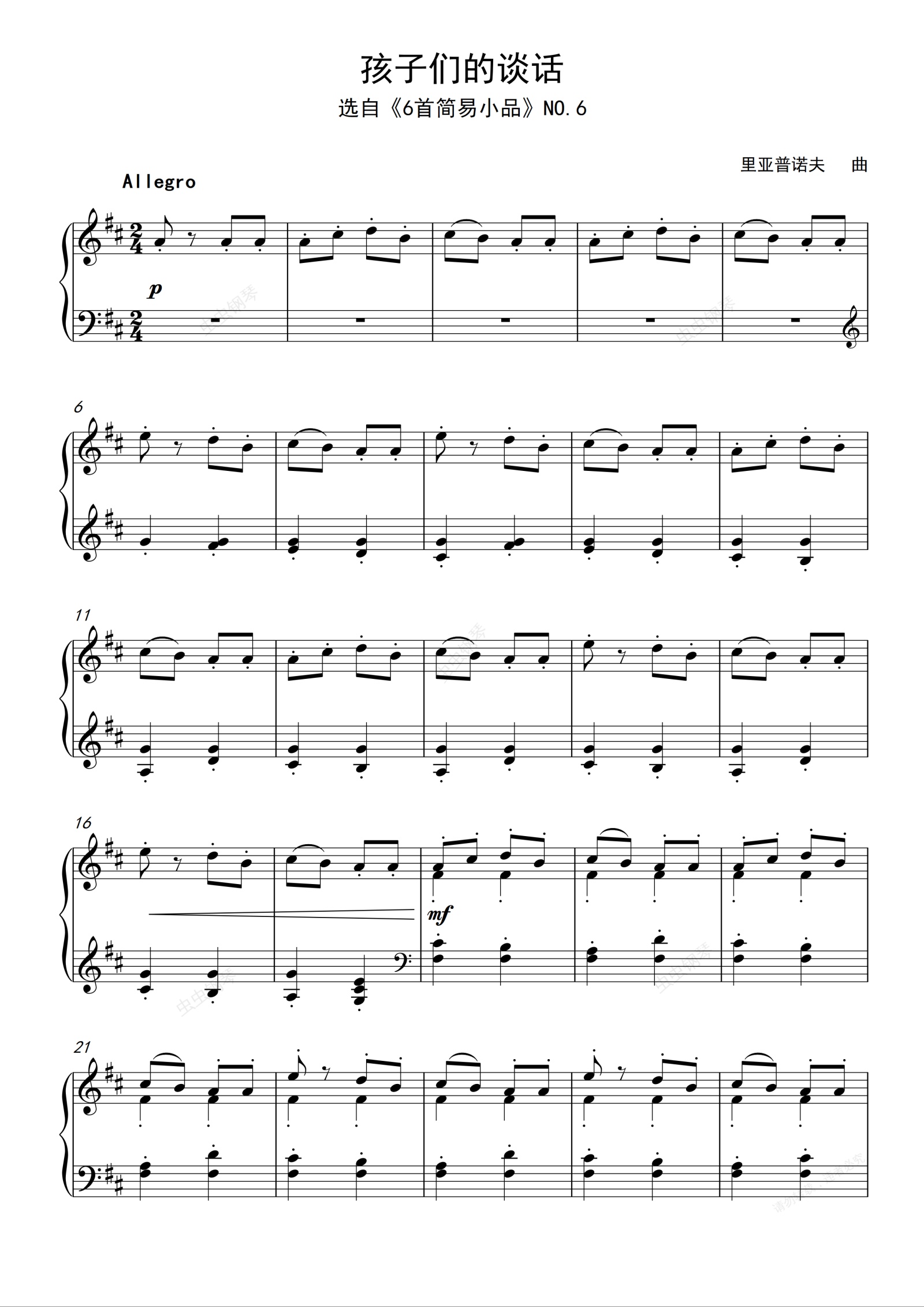 钢琴谱:5级-复调乐曲-孩子们的谈话