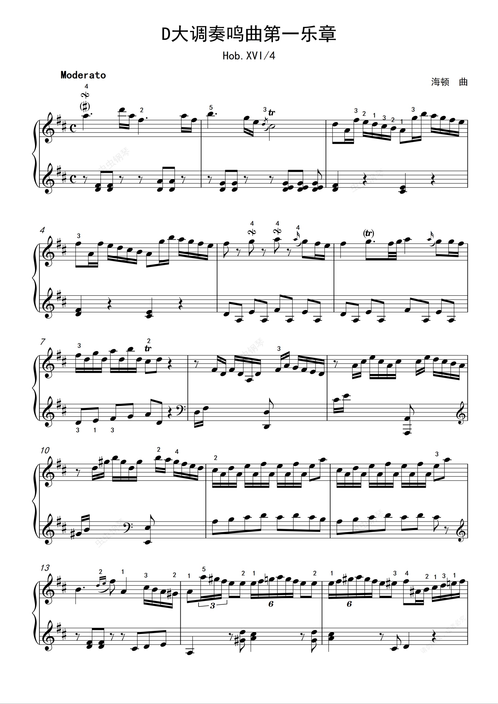 钢琴谱:5级-大型乐曲-D大调奏鸣曲第一乐章