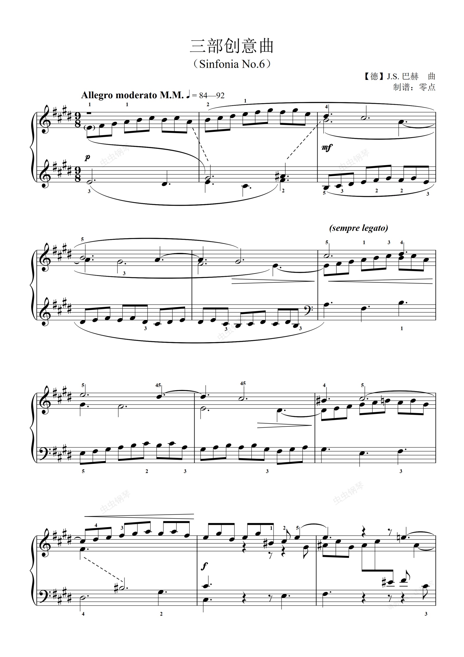 钢琴谱:第八级   三部创意曲(Sinfonia No.6)