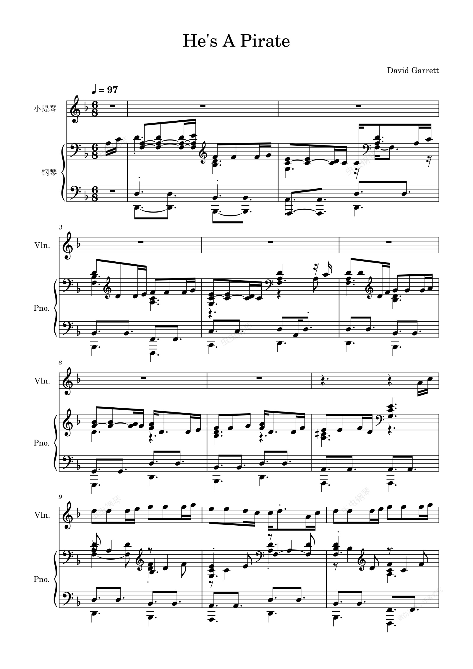 钢琴谱:他是海盗《加勒比海盗》电影插曲He's A Pirate