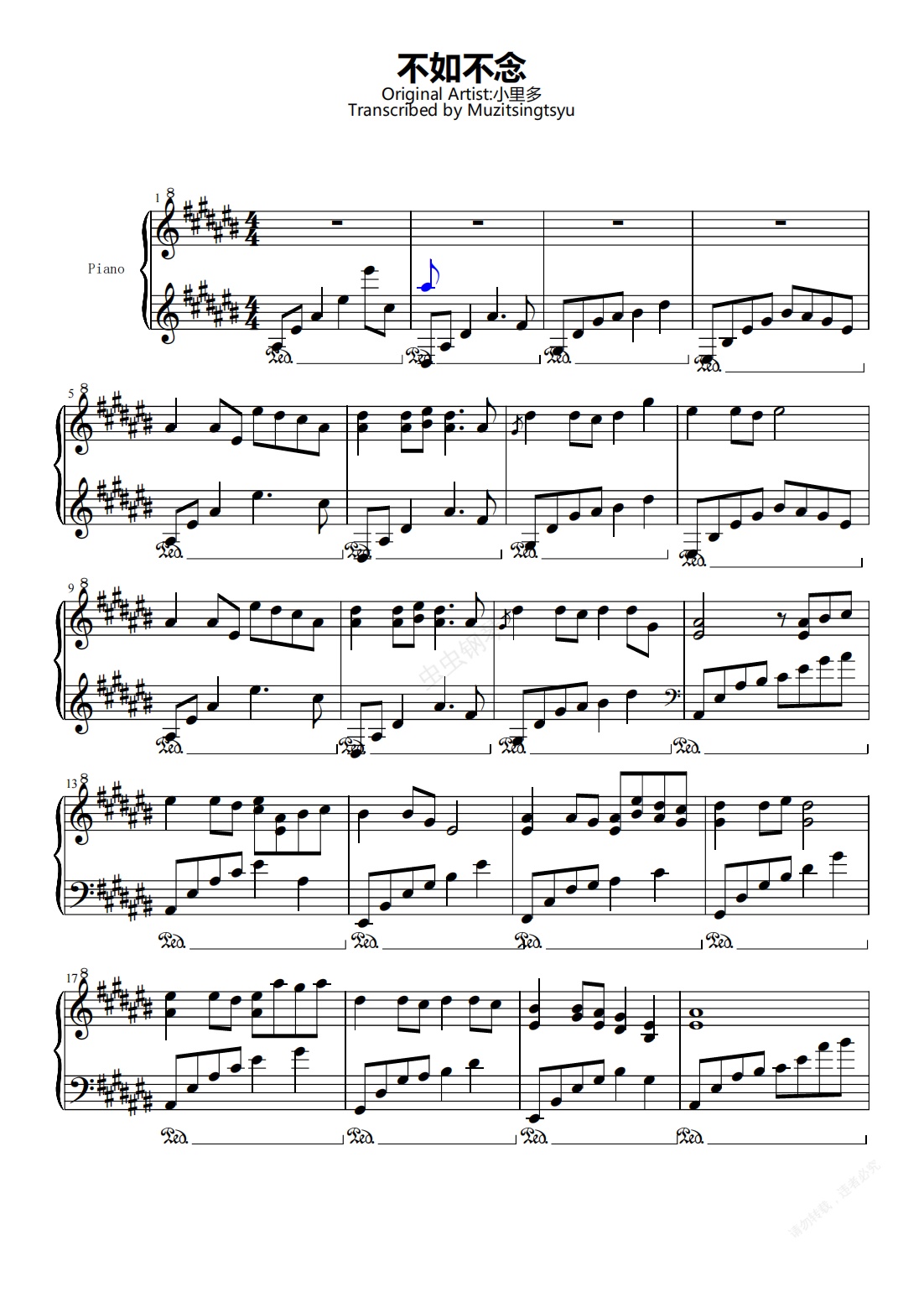 钢琴谱:《不如不念》钢琴谱
