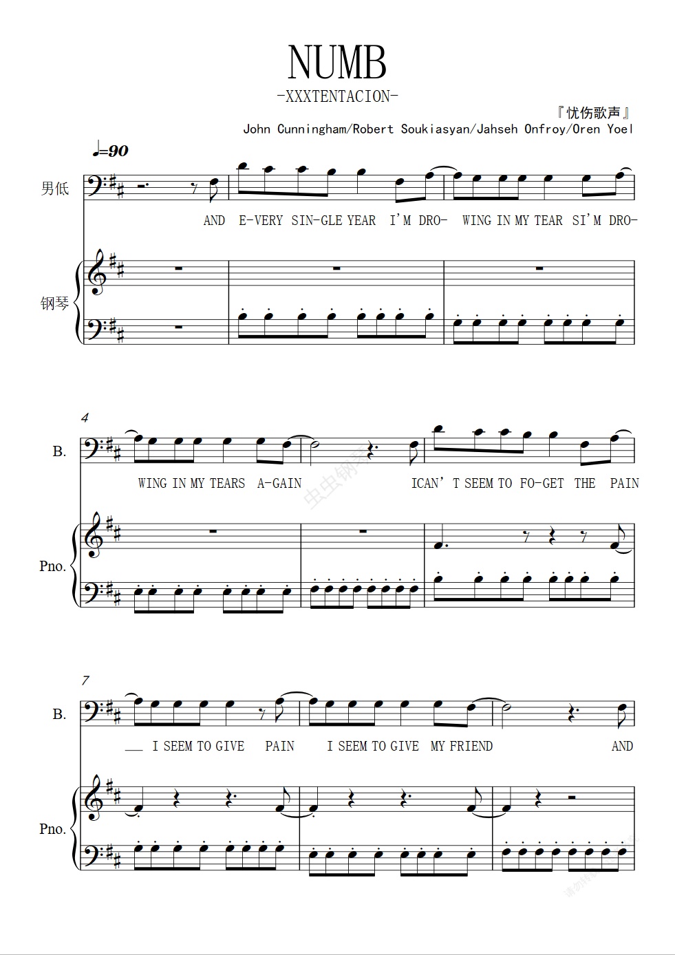钢琴谱:Numb(Xxxtentacion)——『忧伤歌声』
