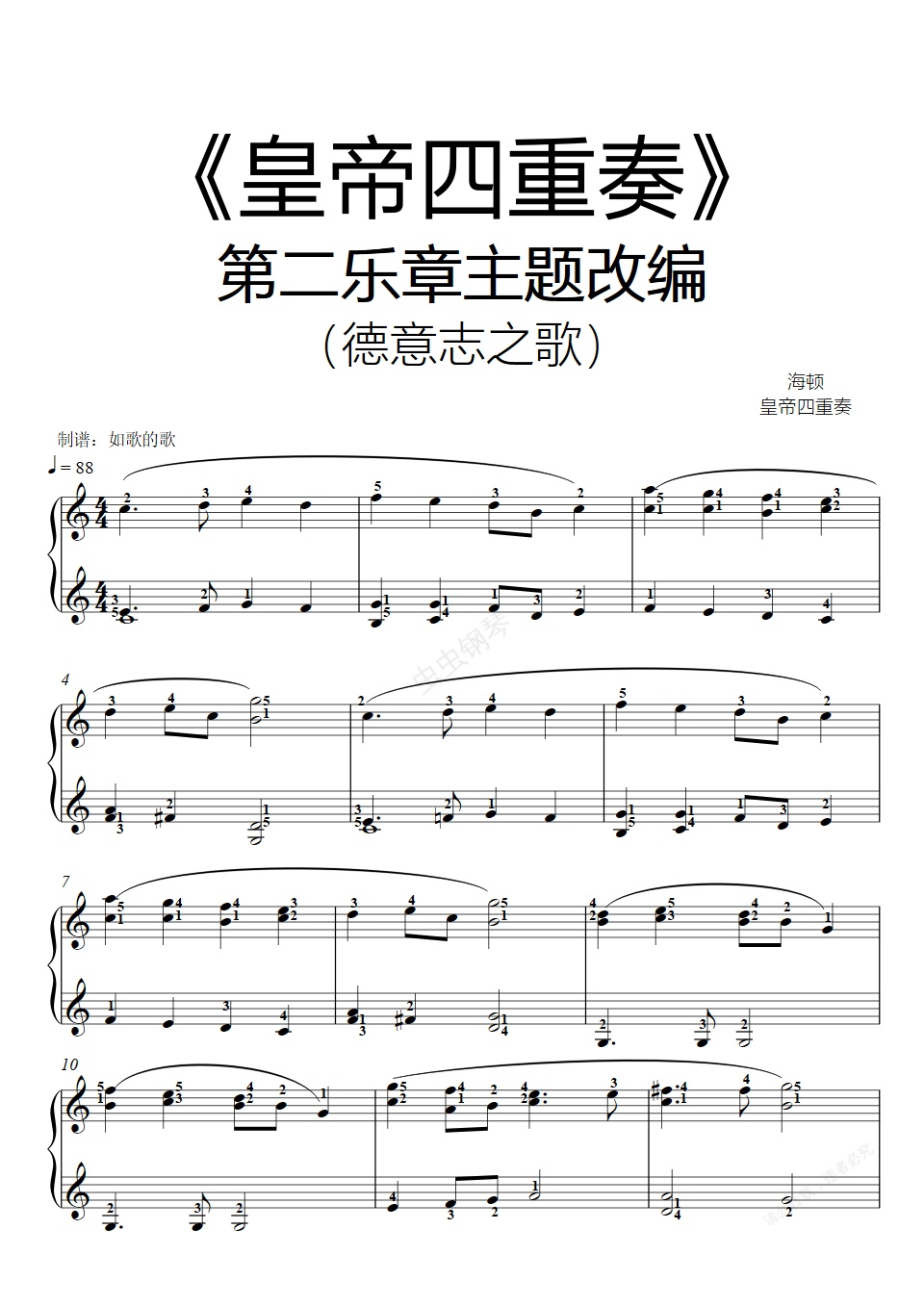 钢琴谱:皇帝四重奏第二乐章主题C调简易改编-蒙童趣味补给