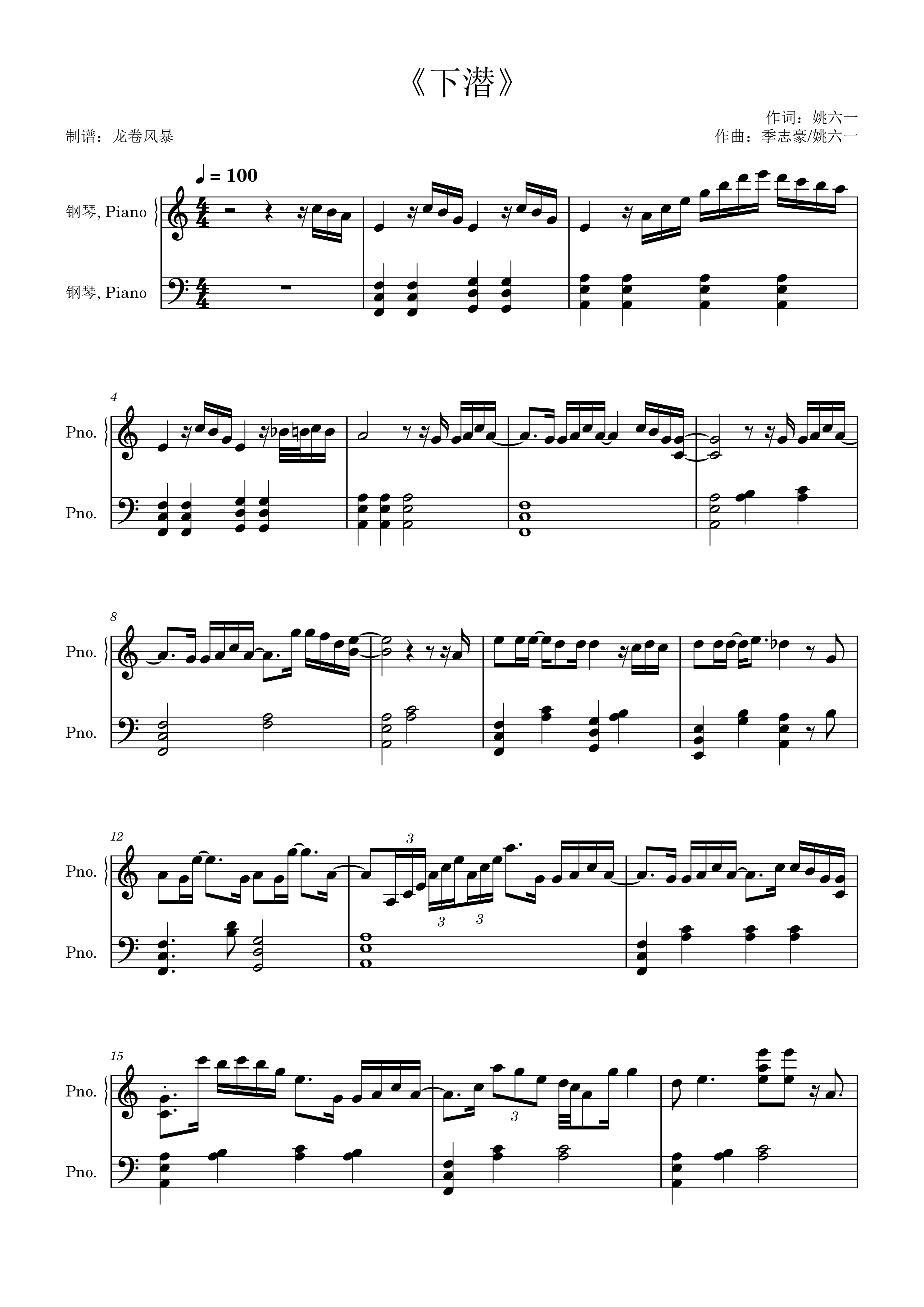 钢琴谱:《下潜》川青/Morerare(C调巨好听版)