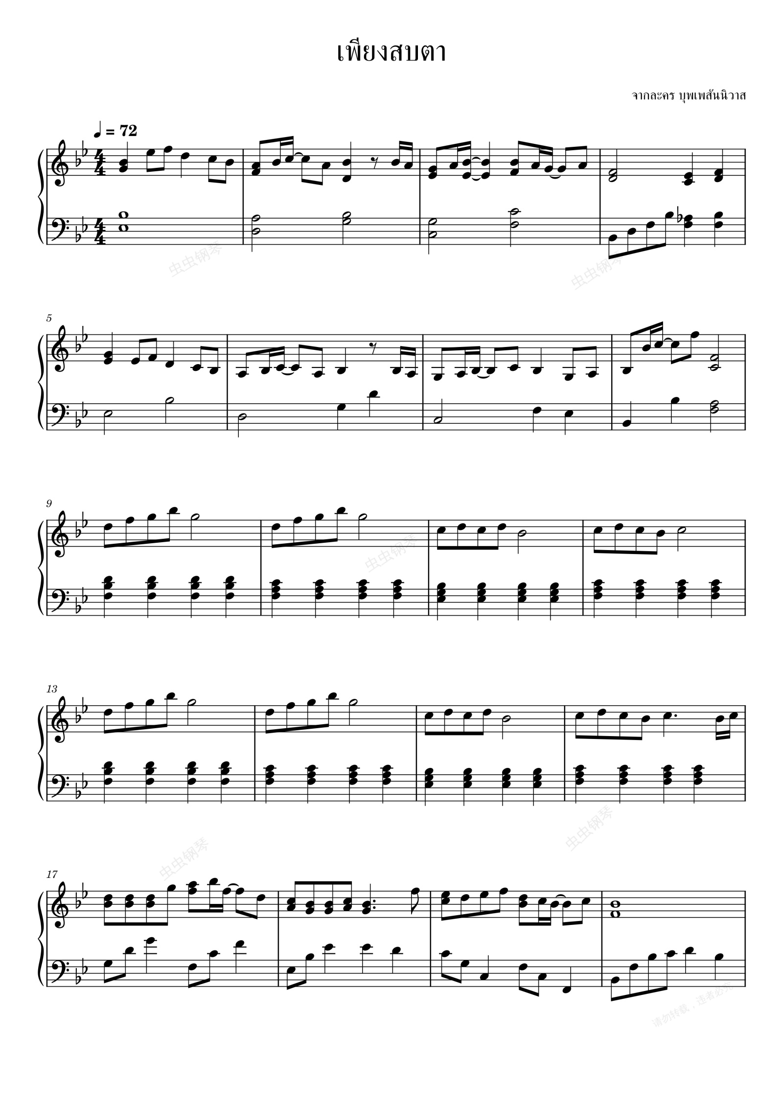 钢琴谱:เพียงสบตา-天生一对-泰剧插曲