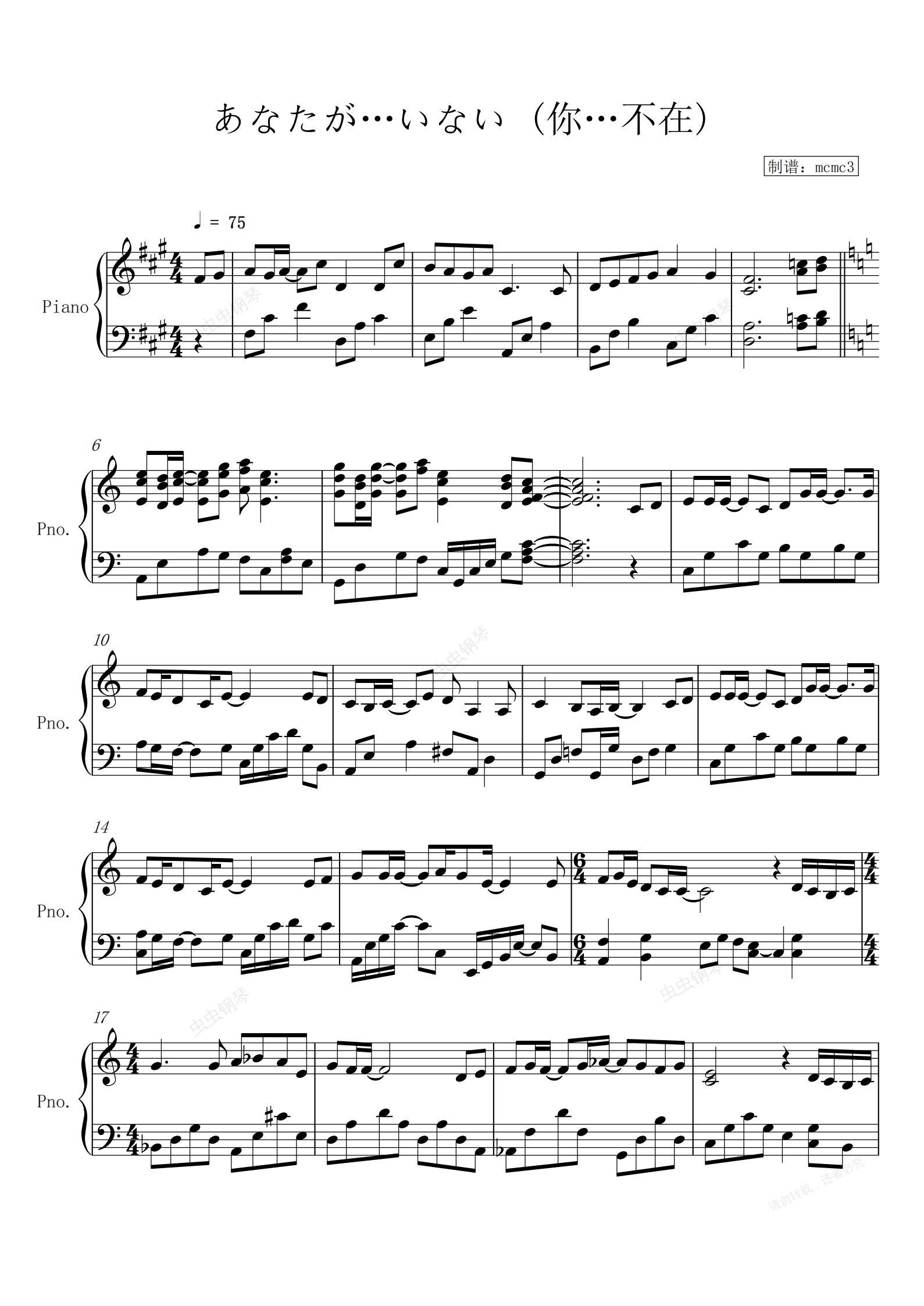 钢琴谱:【日在校园】あなたが…いない (你…不在)——school days