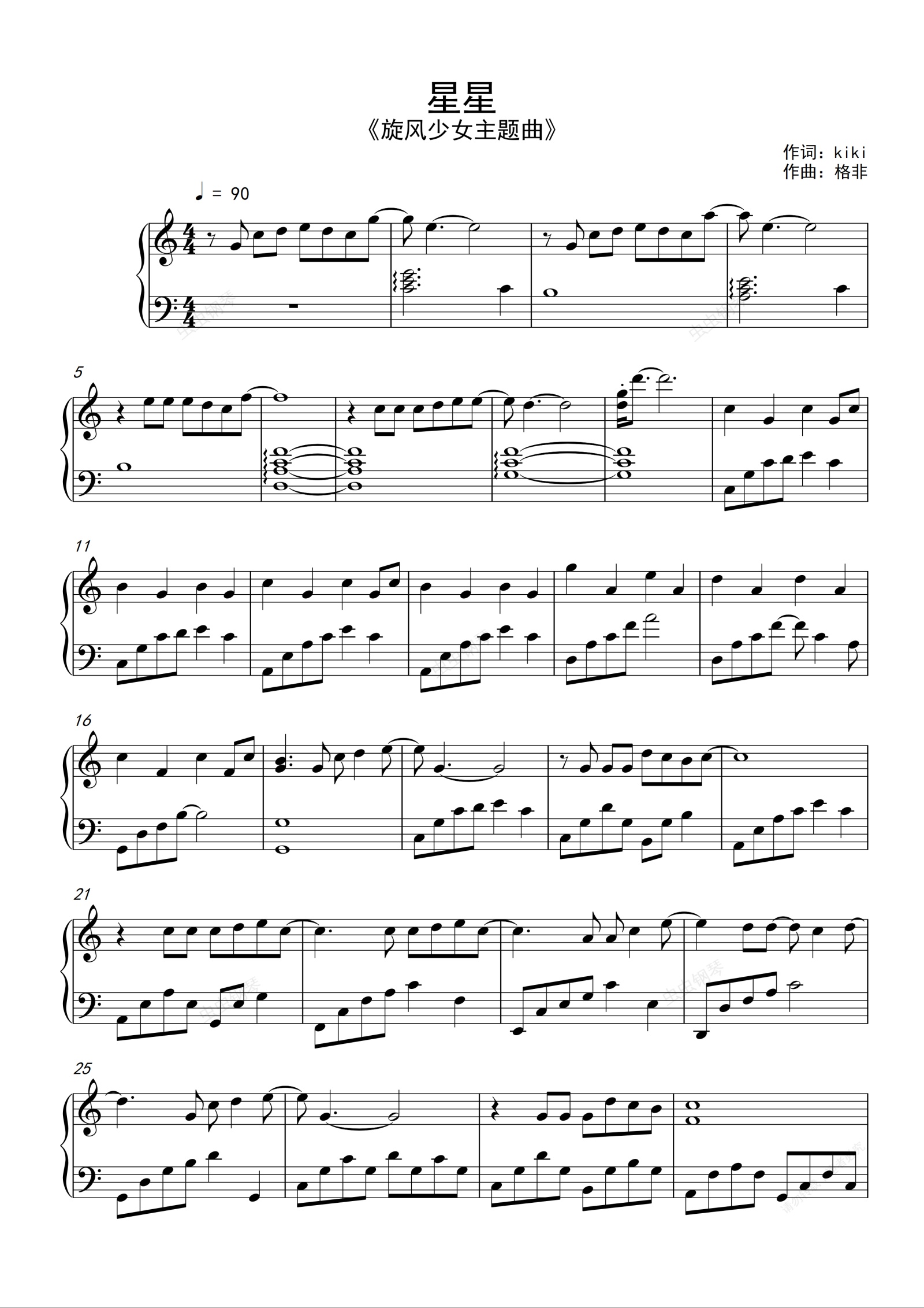 钢琴谱:星星-牛奶咖啡《旋风少女》主题曲 简单弹唱