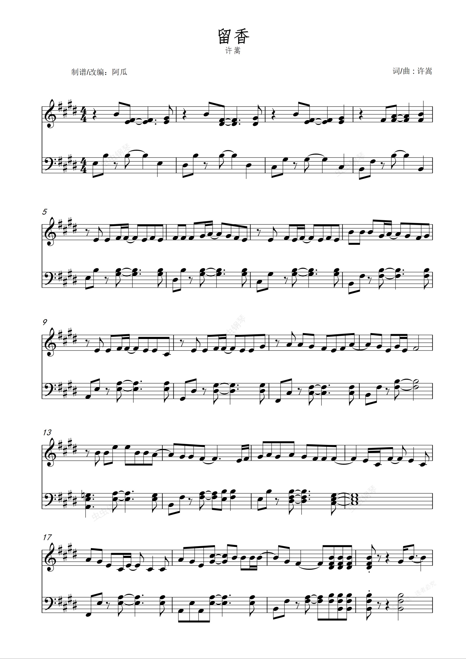 钢琴谱:《留香》-许嵩-钢琴独奏