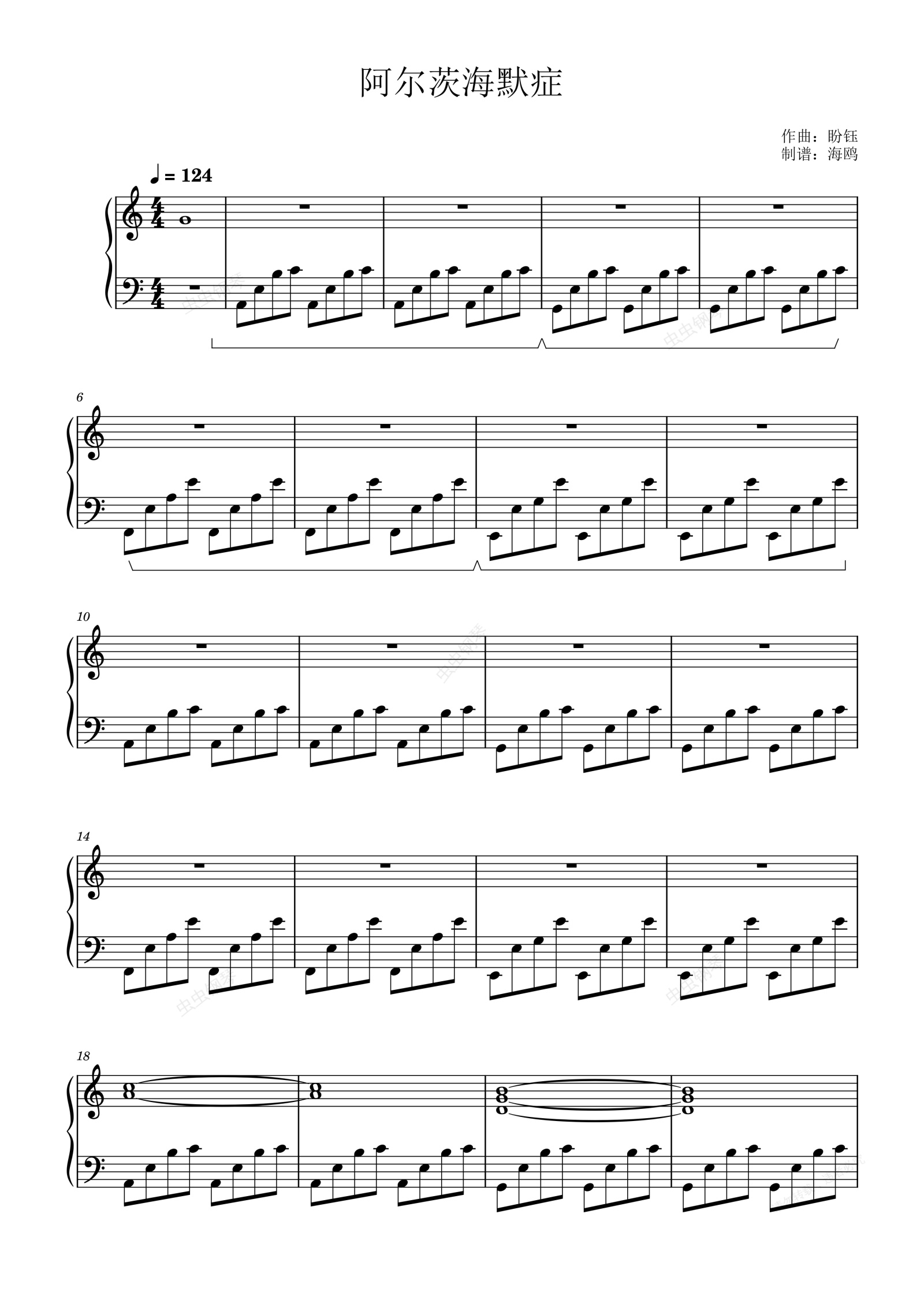 钢琴谱:阿尔茨海默症 盼钰 - 没有尽头的葬礼
