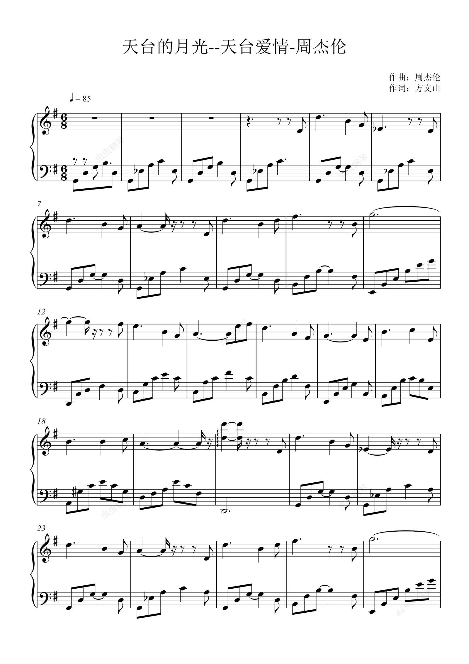 钢琴谱:周杰伦 Jay Chou - 天台的月光
