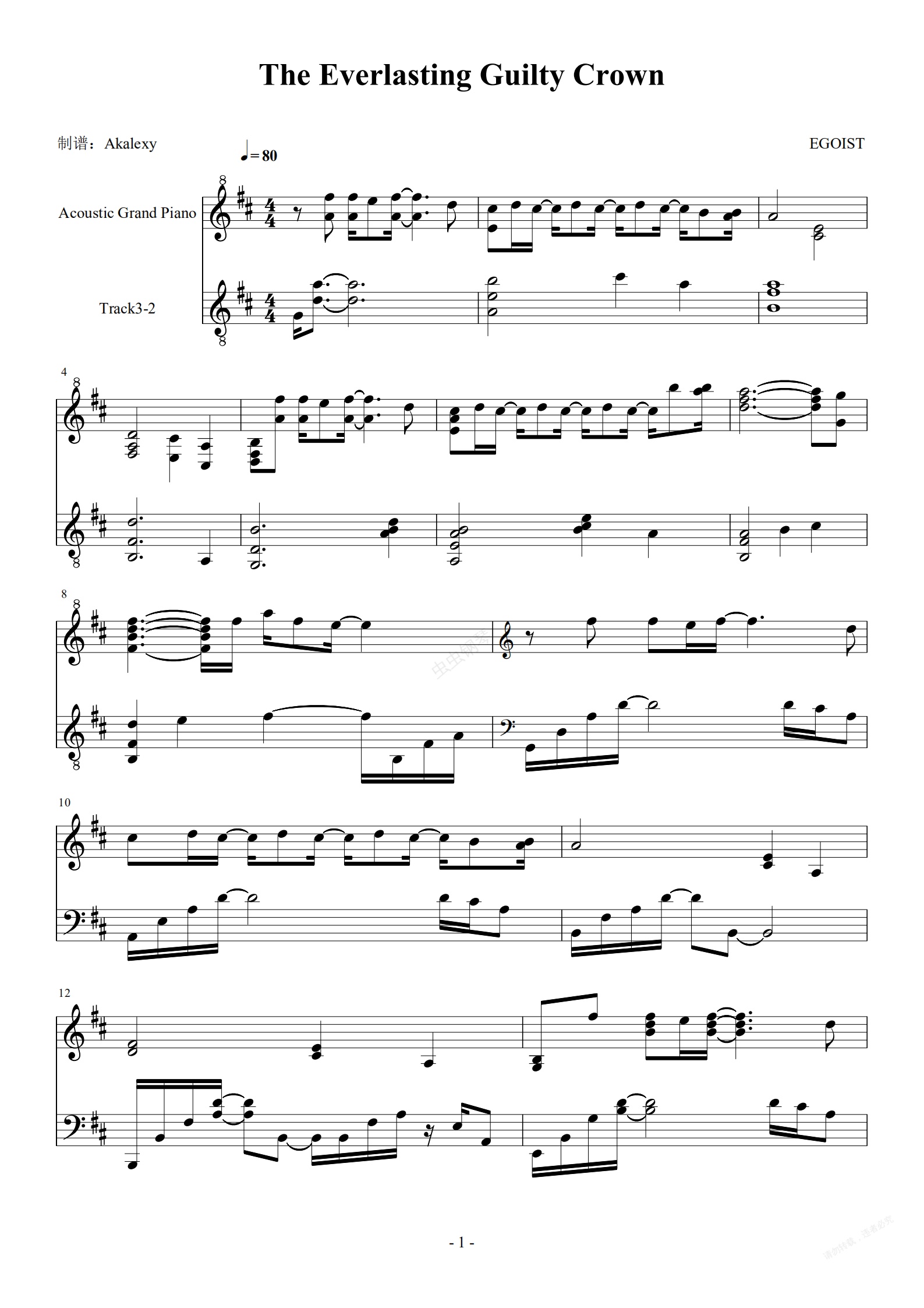 钢琴谱:罪恶王冠OP2《The Everlasting Guilty Crown》