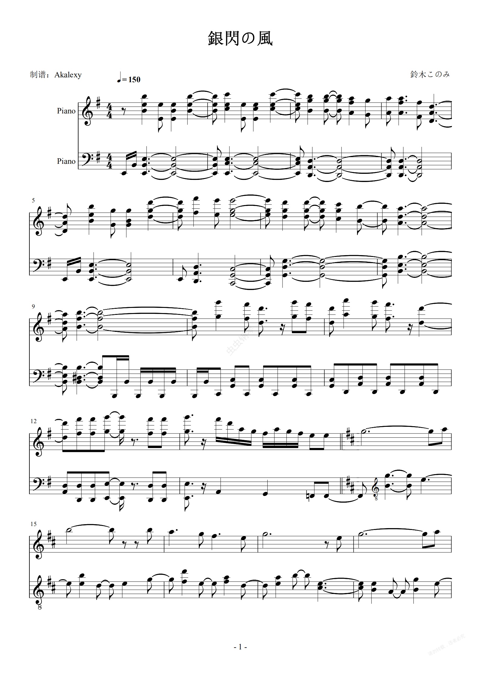 钢琴谱:魔弹之王与战姬《銀閃の風》