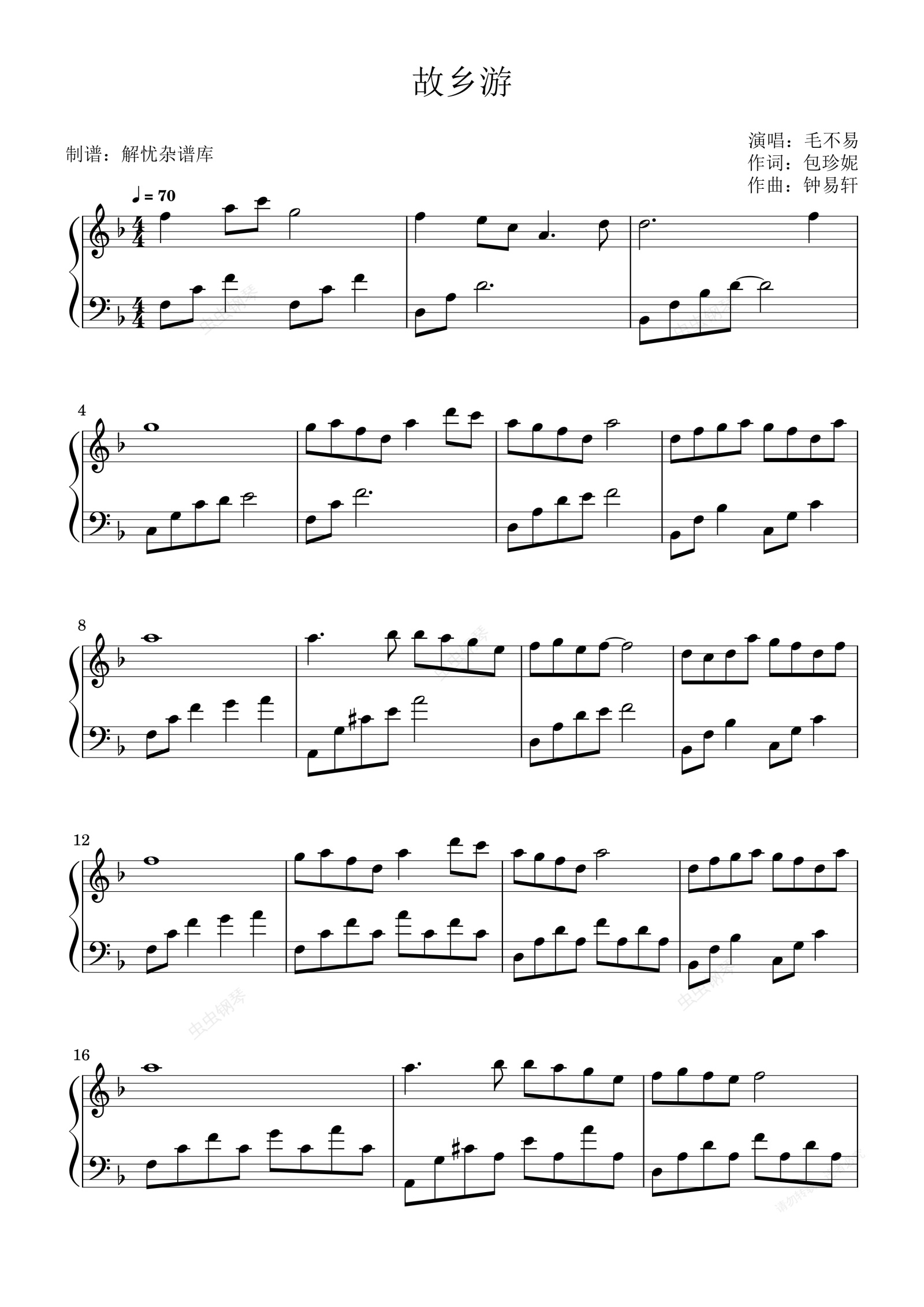 钢琴谱:故乡游