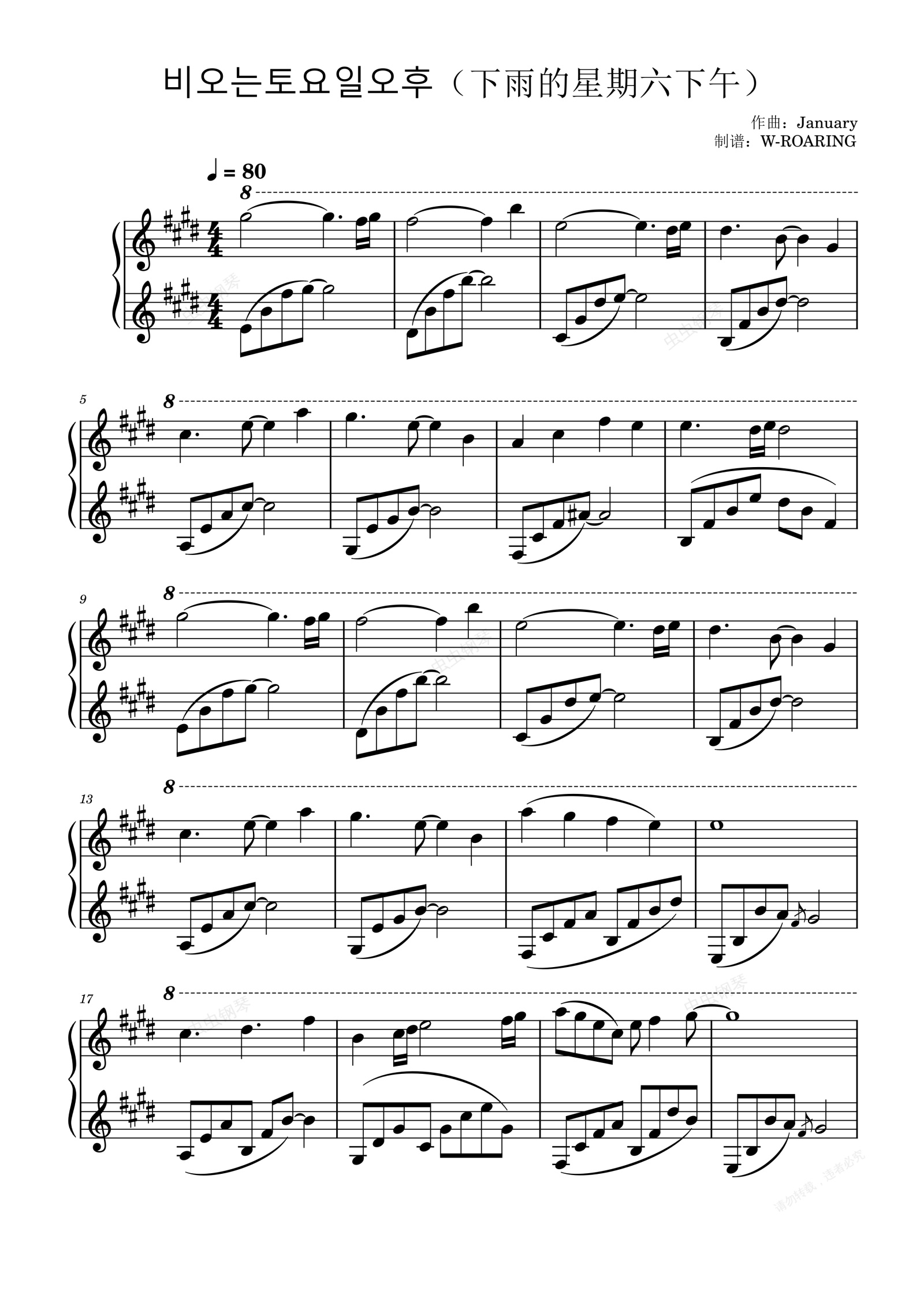 钢琴谱:비오는 토요일 오후(下雨的星期六下午)