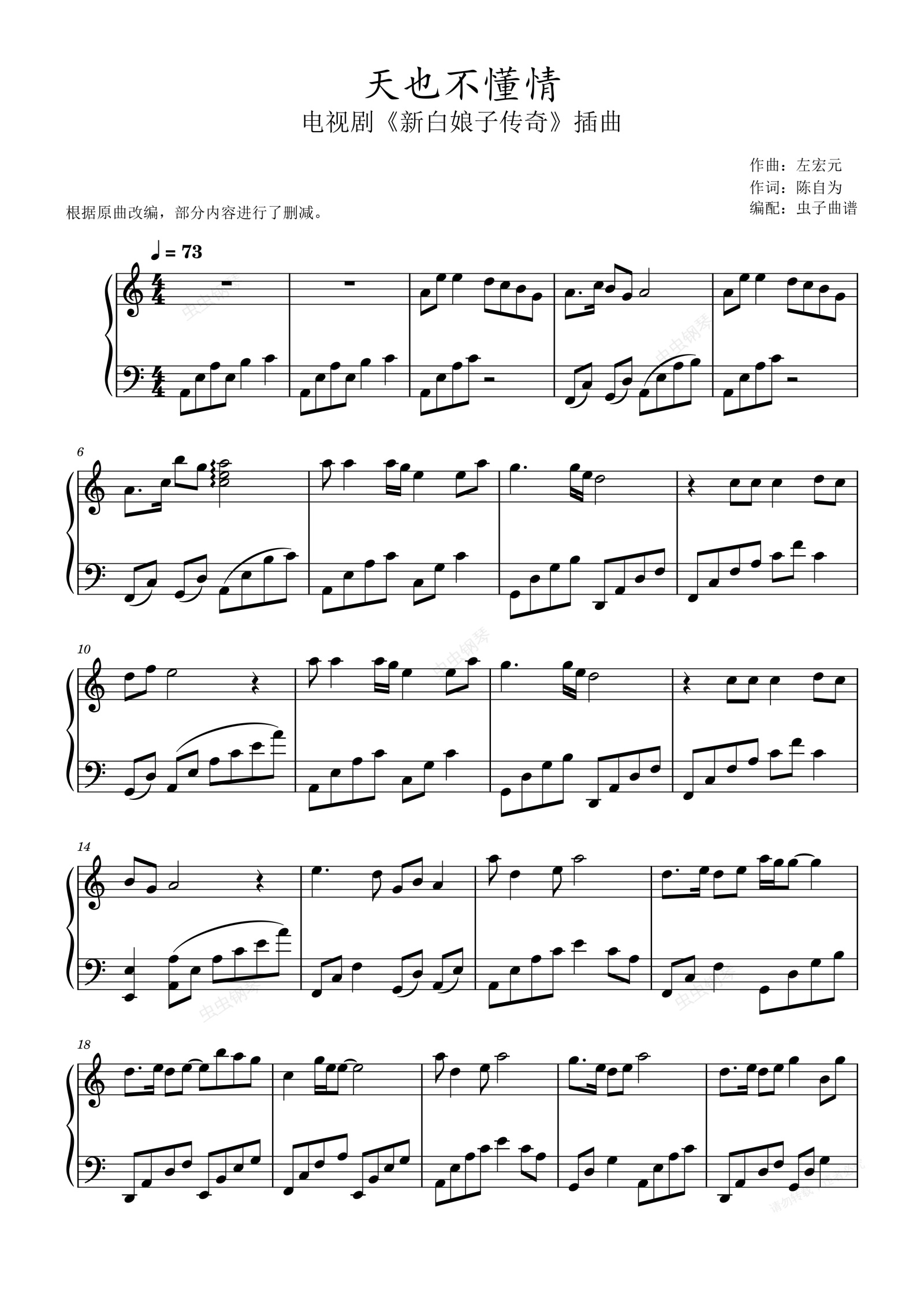 钢琴谱:天也不懂情 (简单唯美抒情)