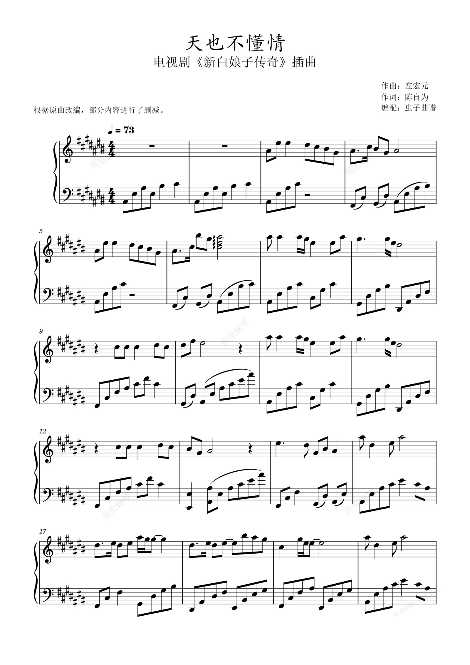 钢琴谱:天也不懂情 (原调唯美抒情)