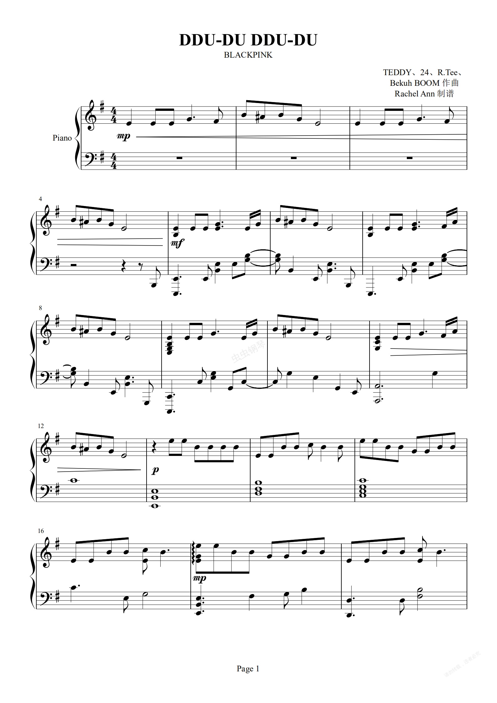 钢琴谱:BLACKPINK - DDU-DU DDU-DU (뚜두뚜두)原调钢琴独奏 韩国网友改编
