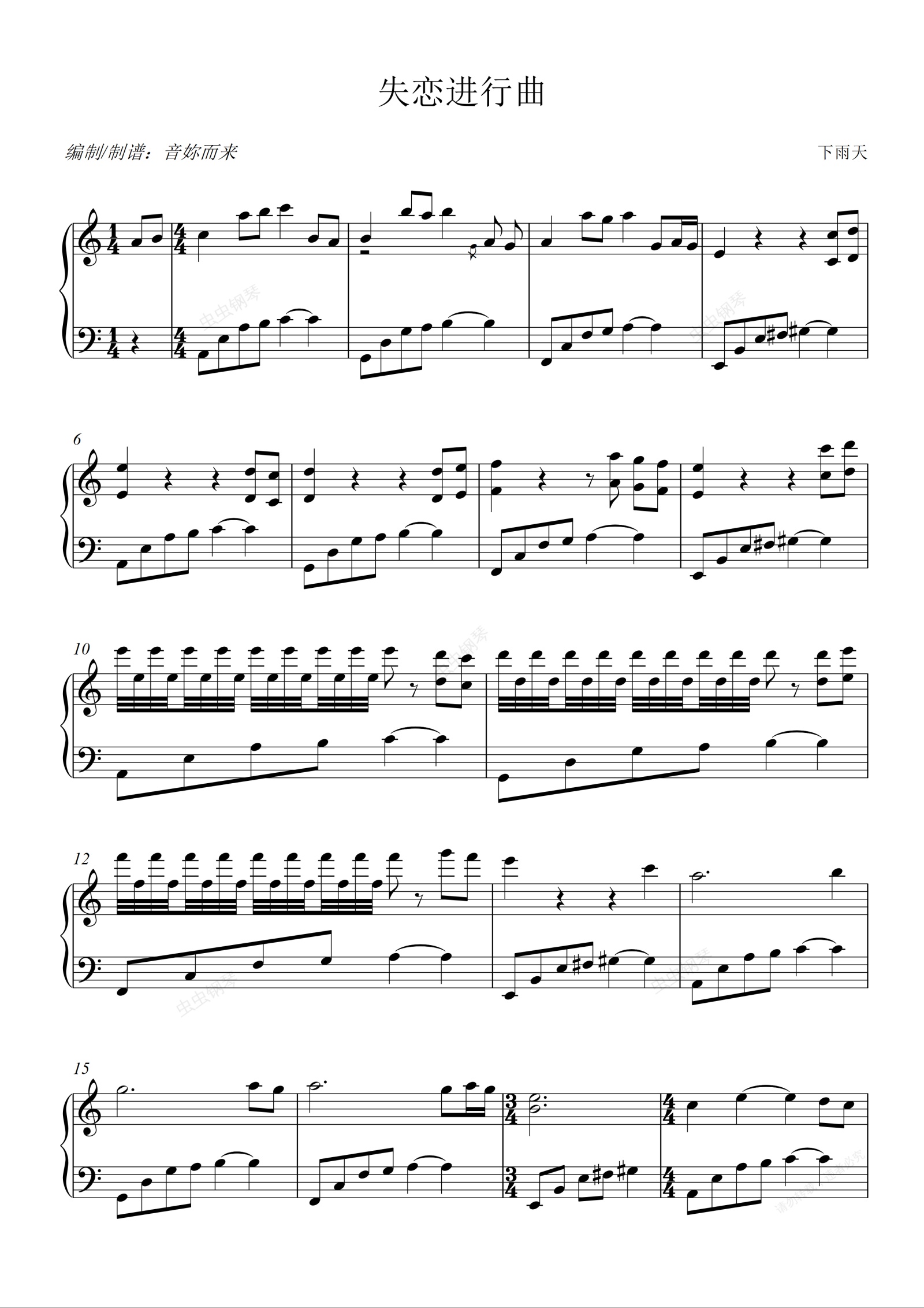 钢琴谱:《失恋进行曲》关于你 提起满是遗憾 关于你 说起满是喜欢 关于你 想起满是不甘