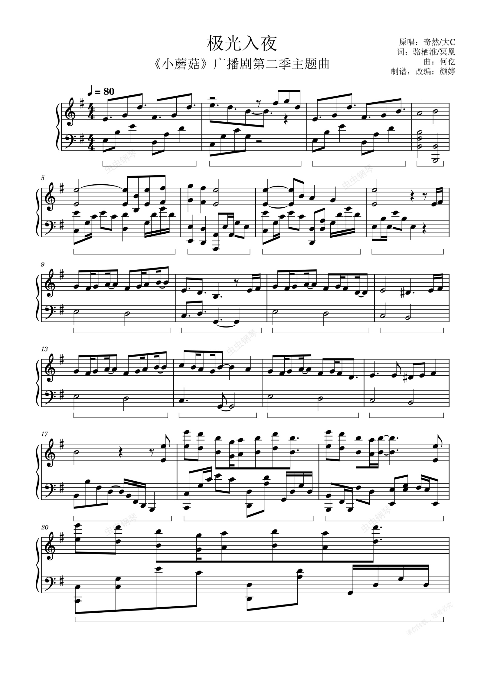 钢琴谱:《极光入夜》——《小蘑菇》广播剧第二季主题曲