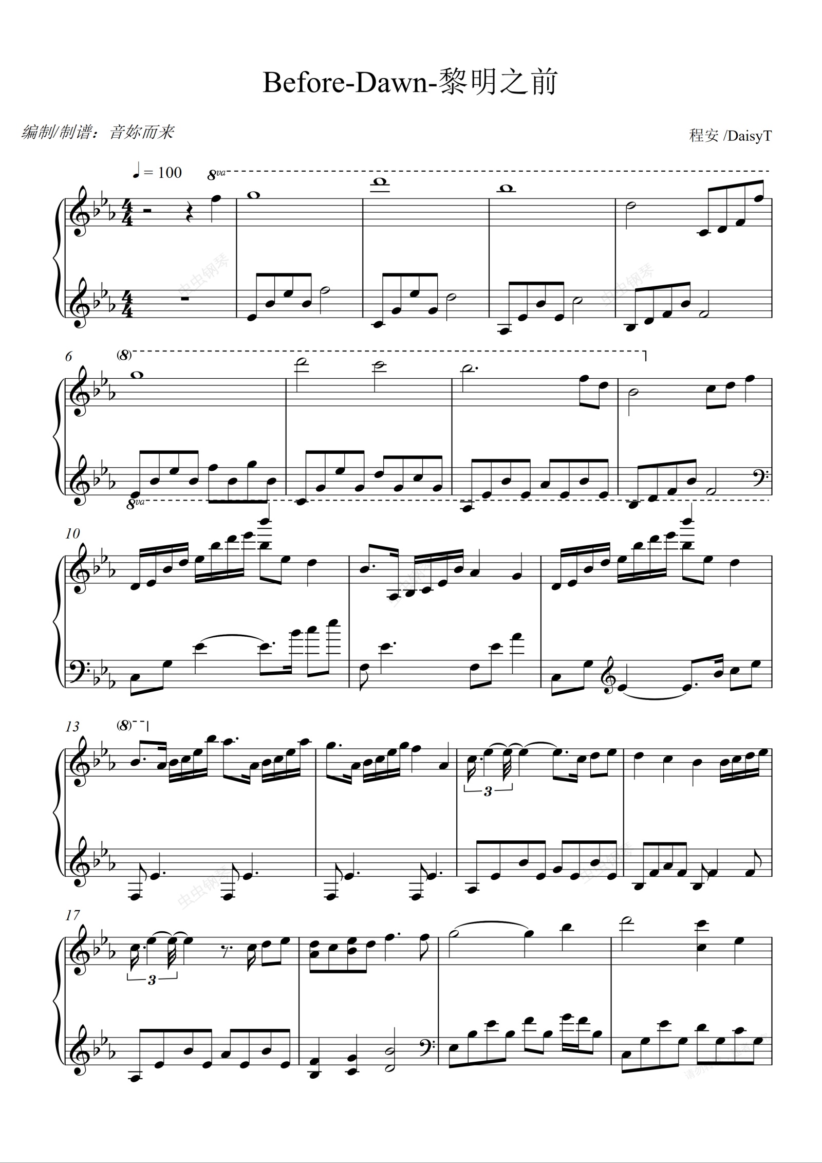 钢琴谱:【治愈系】Before Dawn 黎明之前 钢琴曲