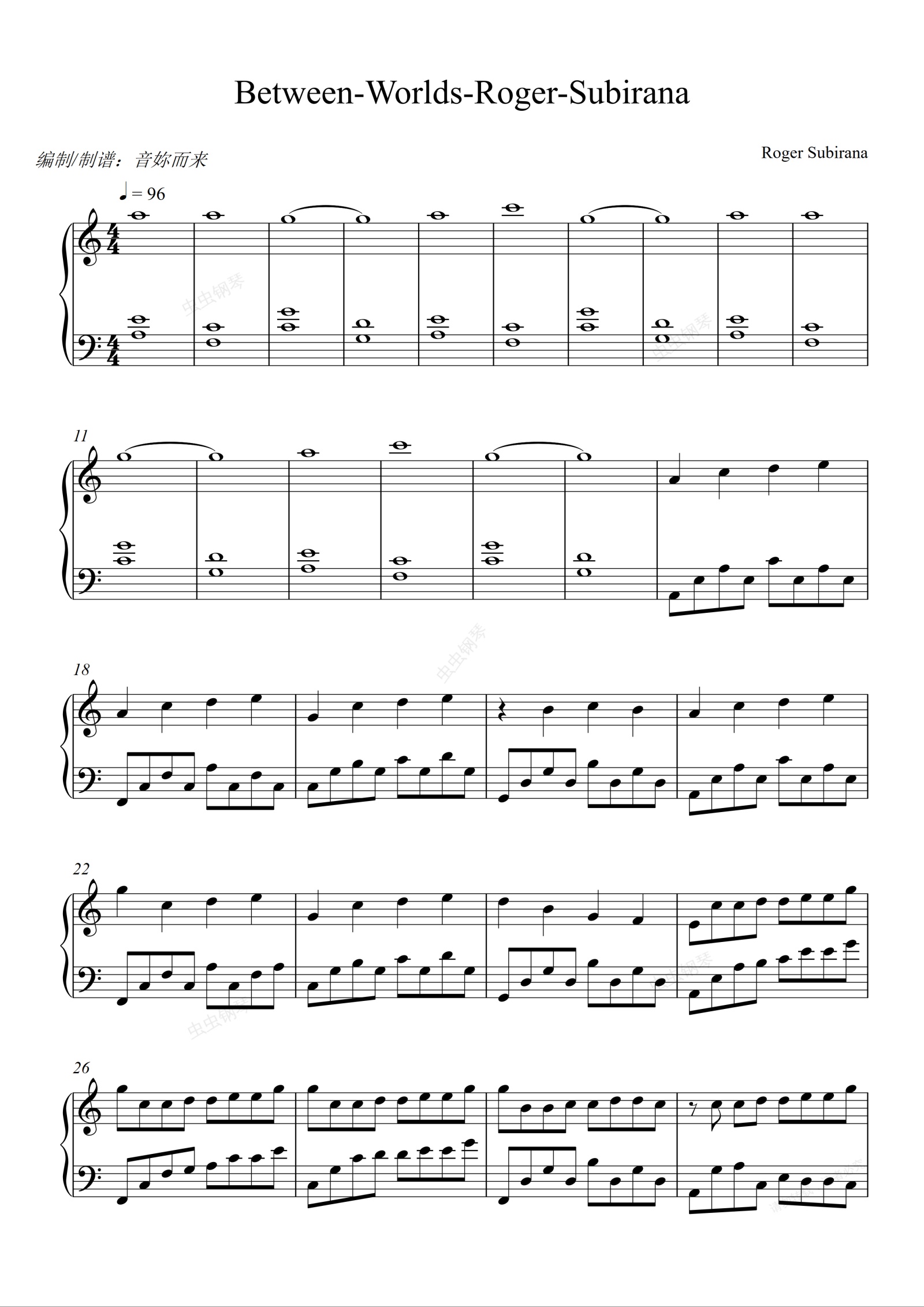 钢琴谱:【好听到爆炸】Roger Subirana Mata - Between Worlds-《无问西东》插曲