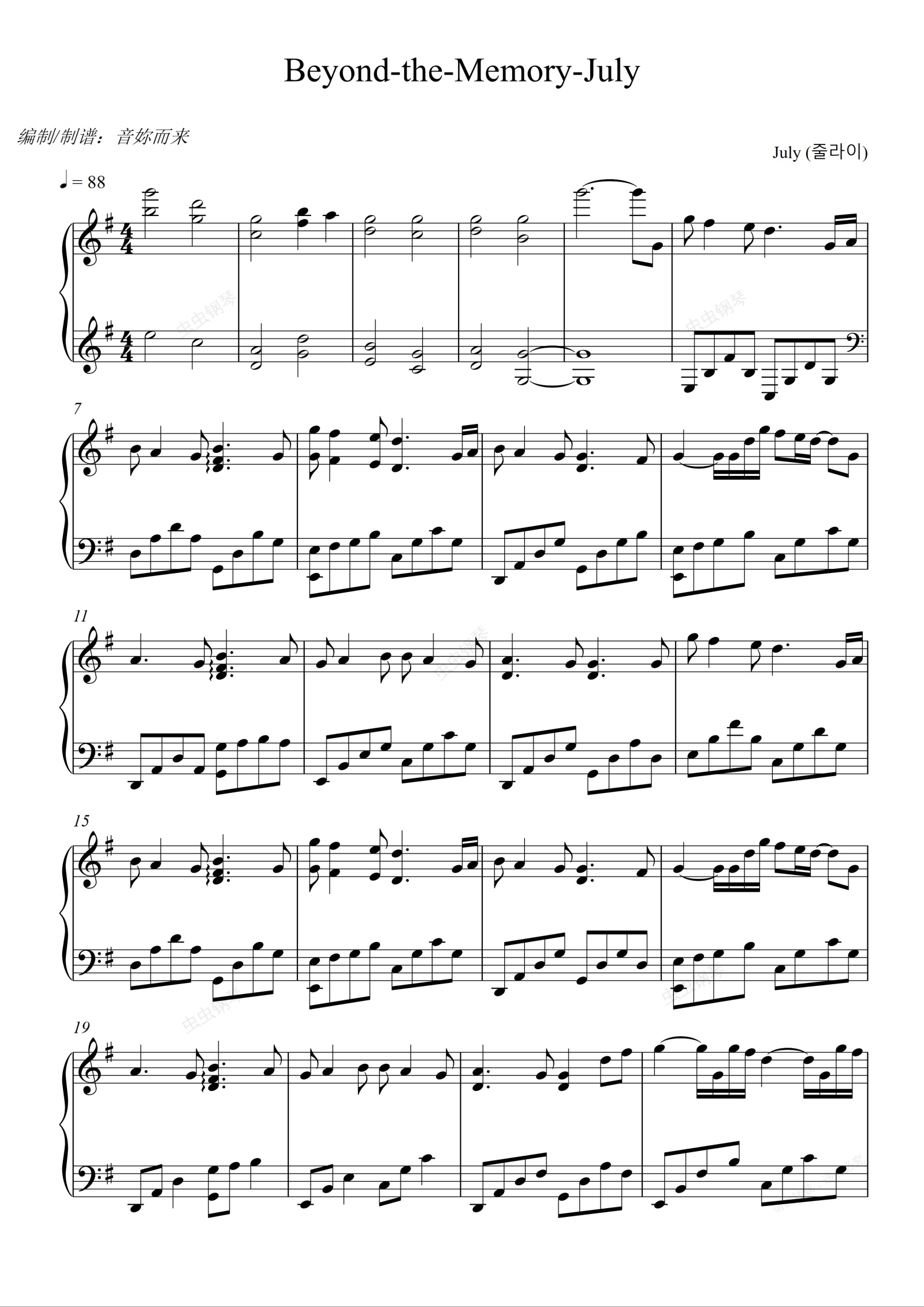 钢琴谱:非常熟悉的纯音乐【Beyond-the-Memory-July】
