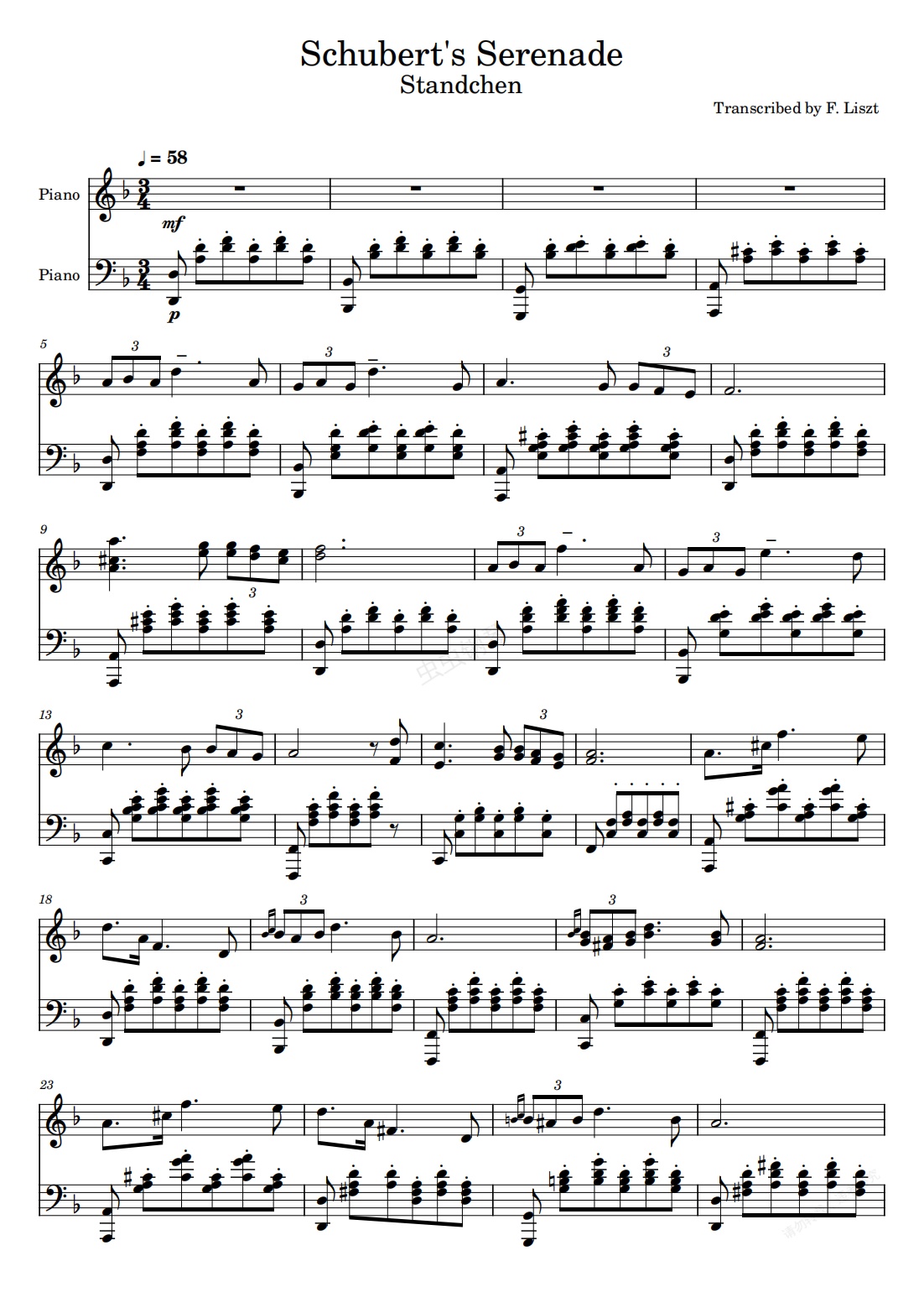 钢琴谱:Serenade/舒伯特 小夜曲