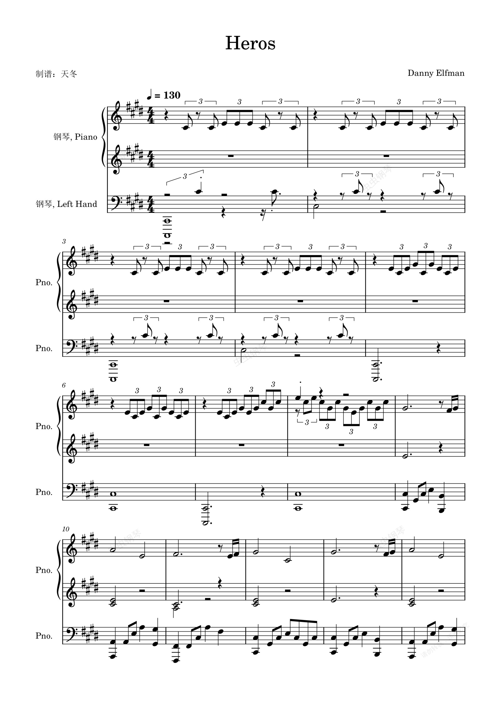 钢琴谱:Heros《复仇者联盟2:奥创纪元》电影主题曲