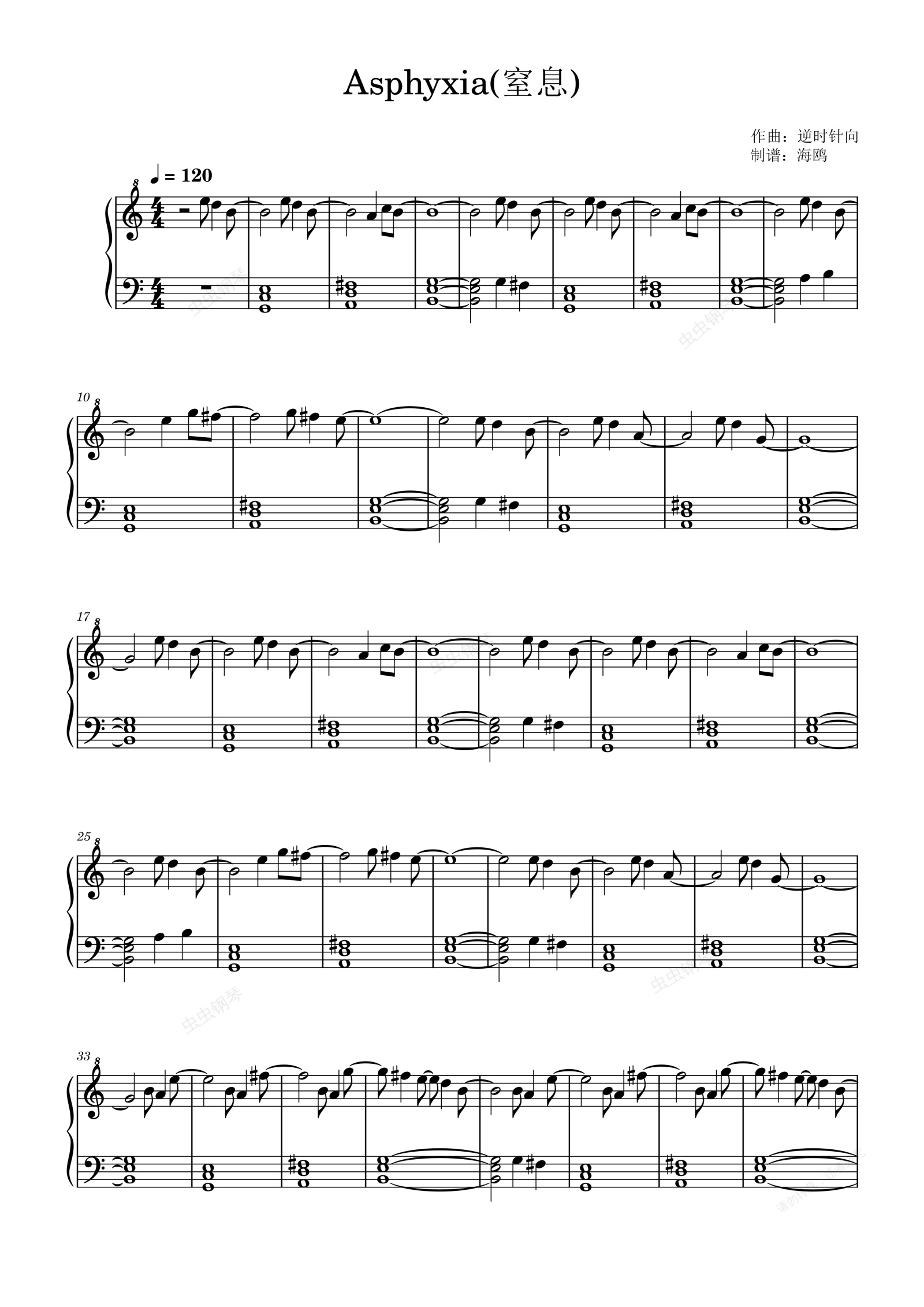 钢琴谱:Asphyxia(窒息)-逆时针向