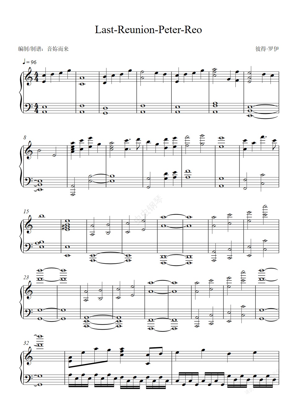 钢琴谱:史诗级钢琴曲-Last Reunion -Peter Roe