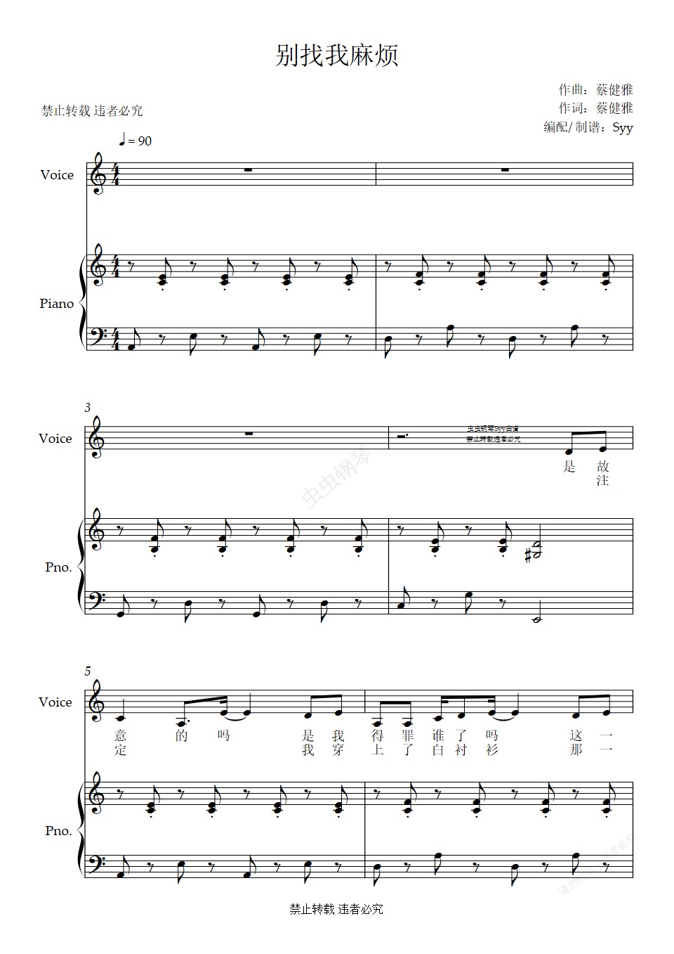 钢琴谱:钢琴弹唱【别找我麻烦】蔡健雅(钢琴+人声试听)