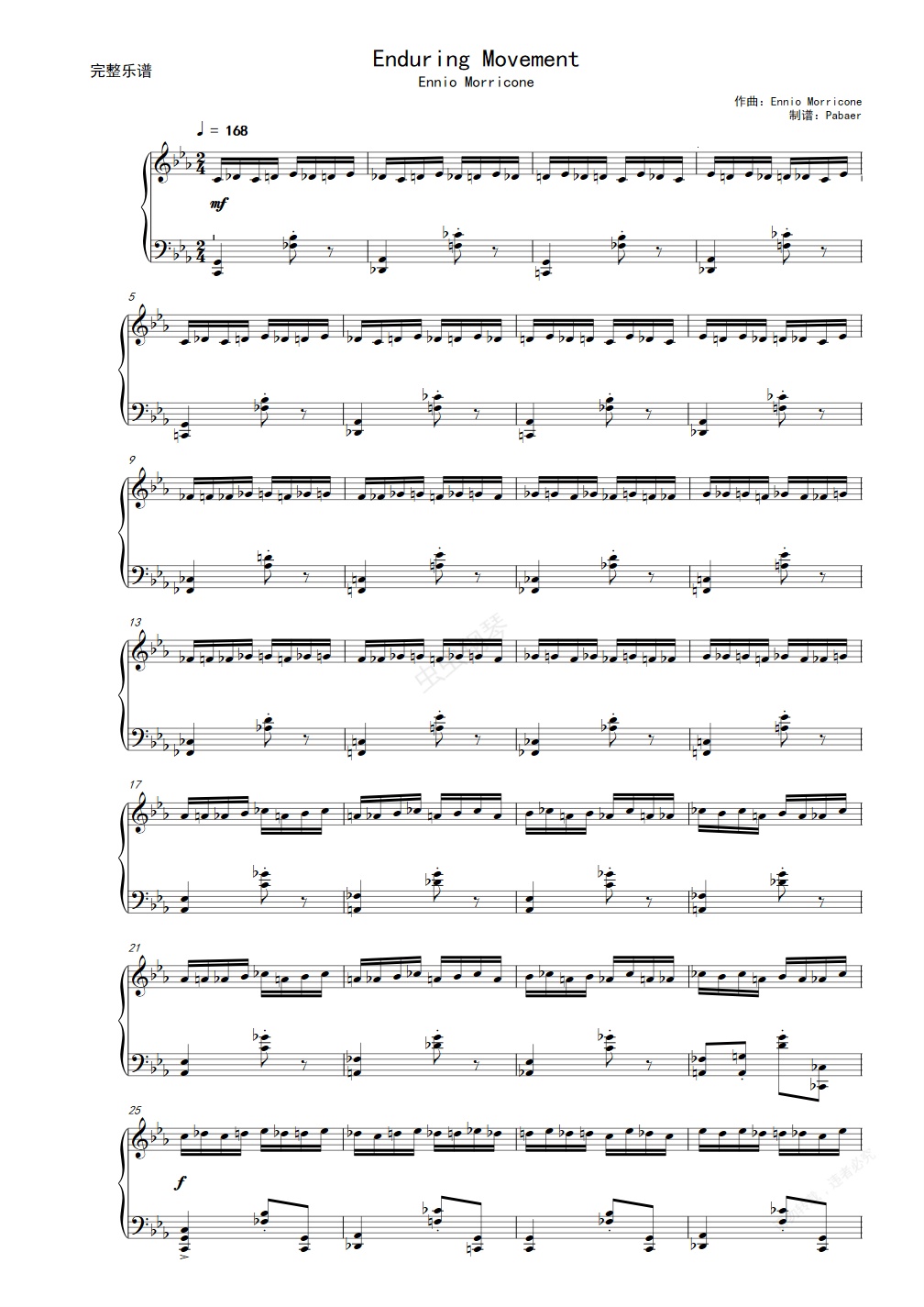 钢琴谱:Enduring Movement(海上钢琴师)