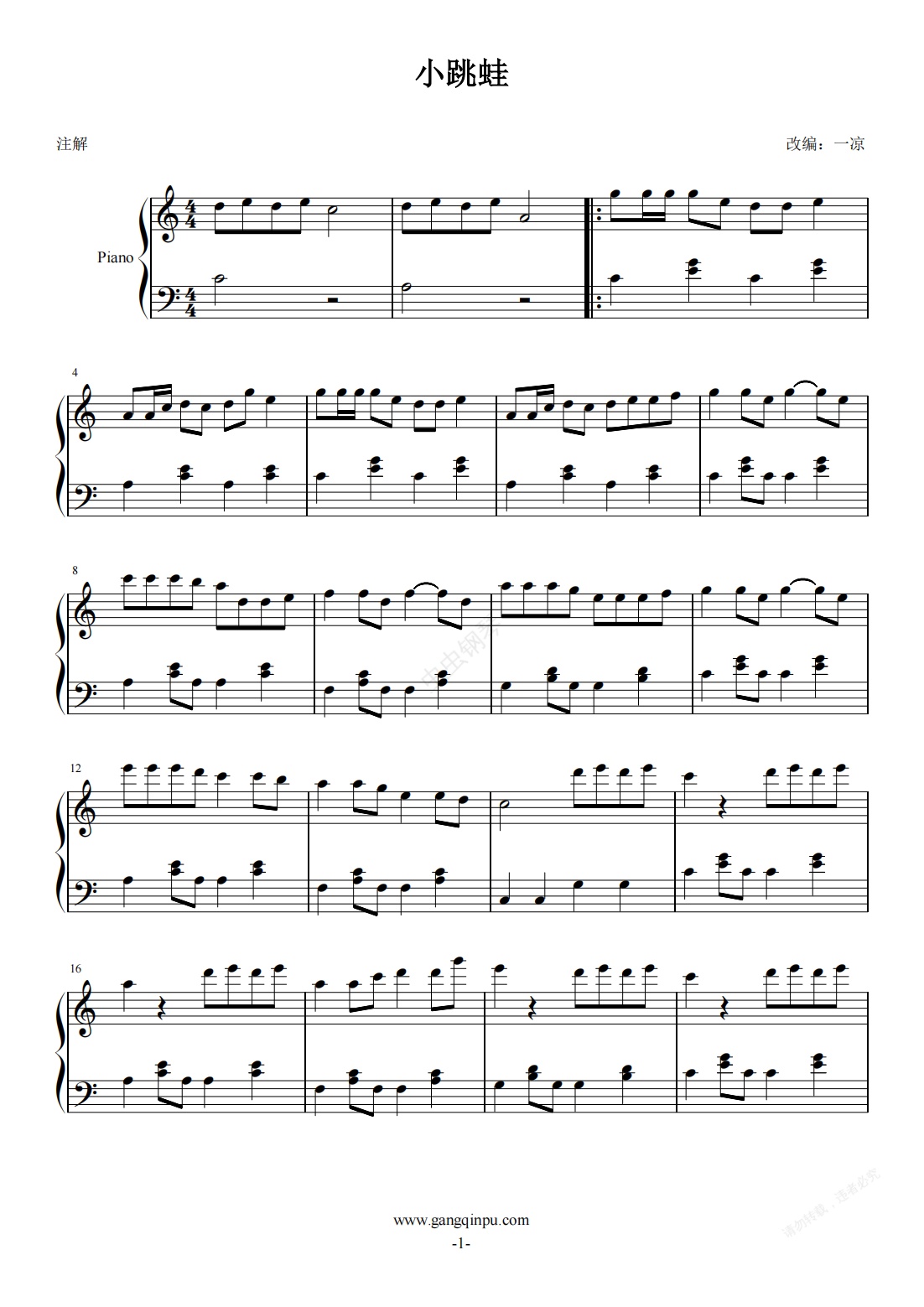 钢琴谱:小跳蛙 完美版