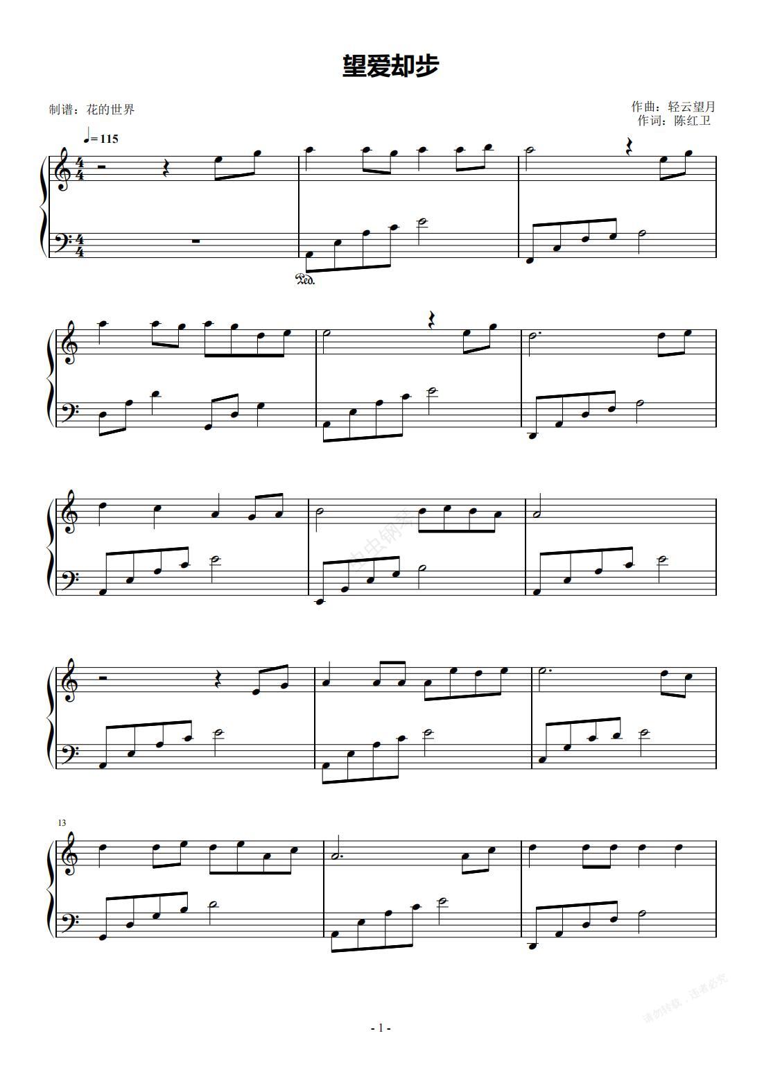 钢琴谱:望爱却步 C调简易版 于洋