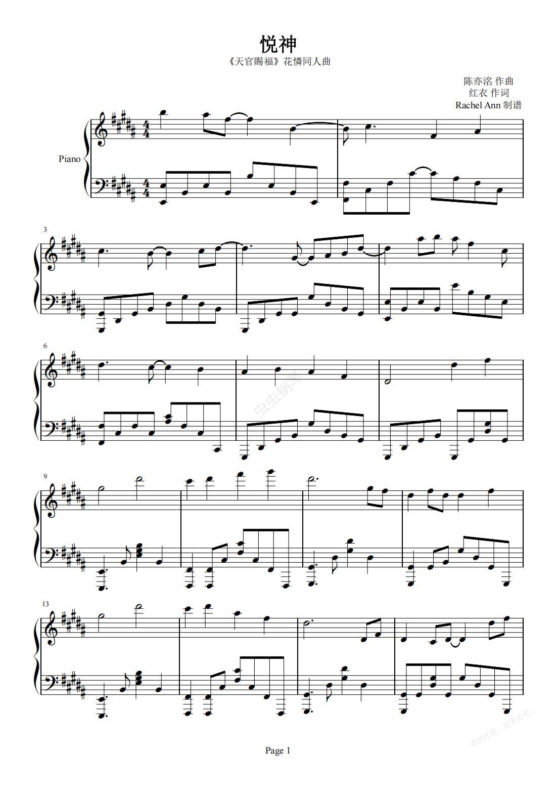 钢琴谱:悦神《天官赐福》花怜同人曲-KBShinya钢琴原调独奏