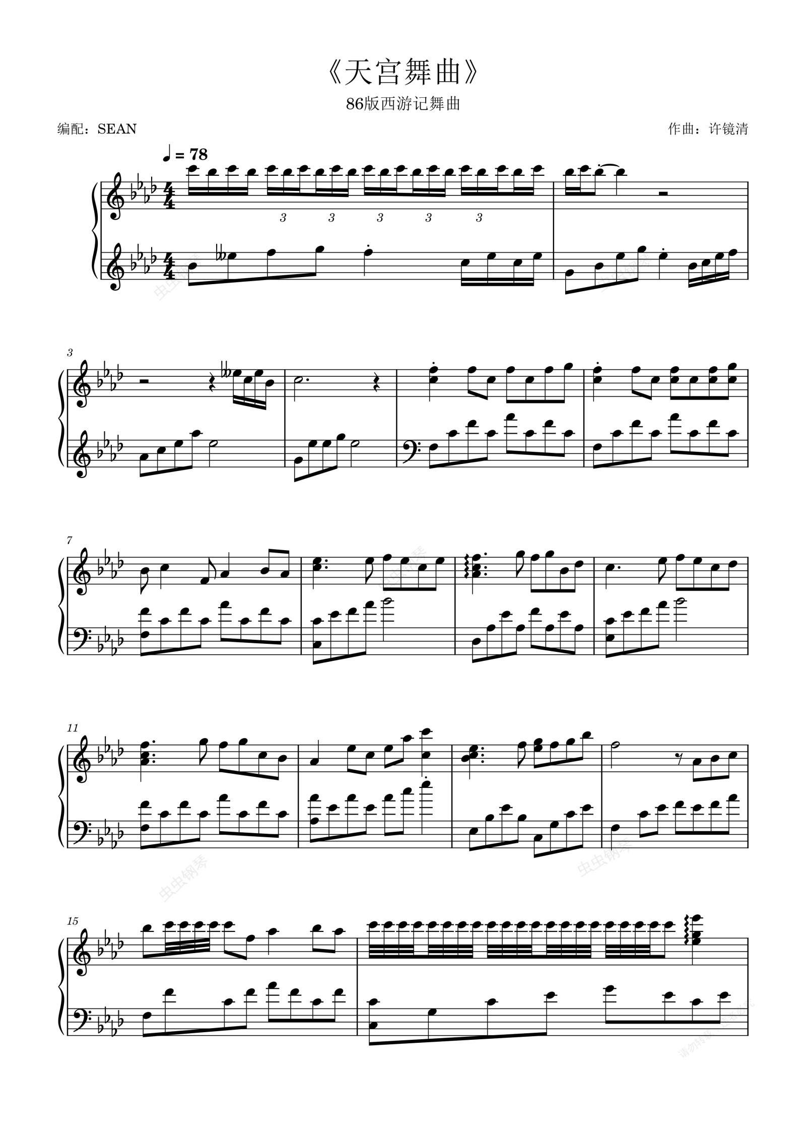 钢琴谱:86版西游记《天宫舞曲》-Ab调(SEAN编配)