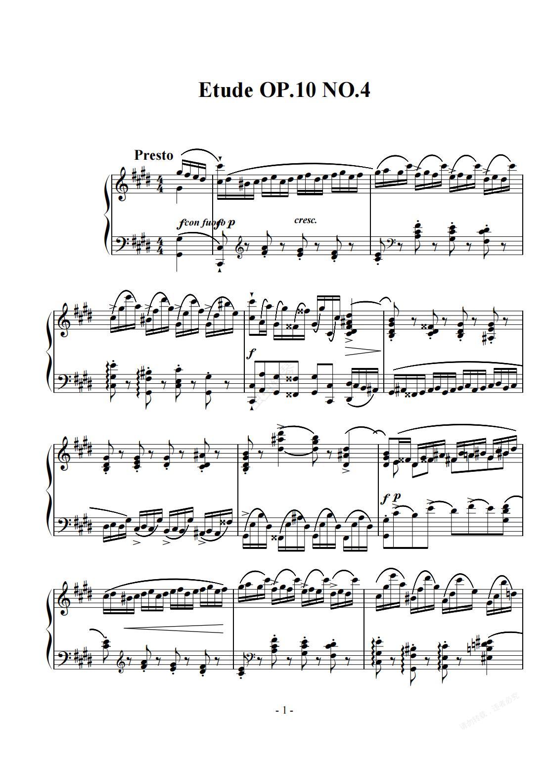 钢琴谱:肖邦练习曲第四首