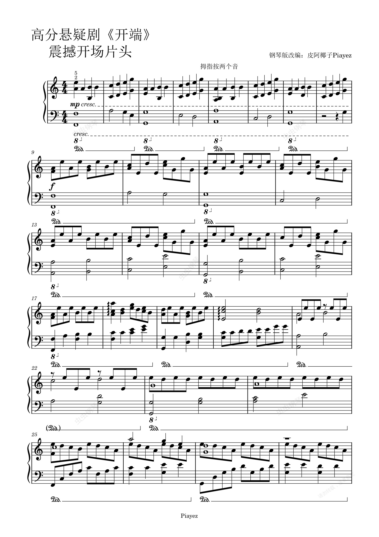 钢琴谱:「开端」震撼背景音乐片头主题曲-原调C调版本带指法