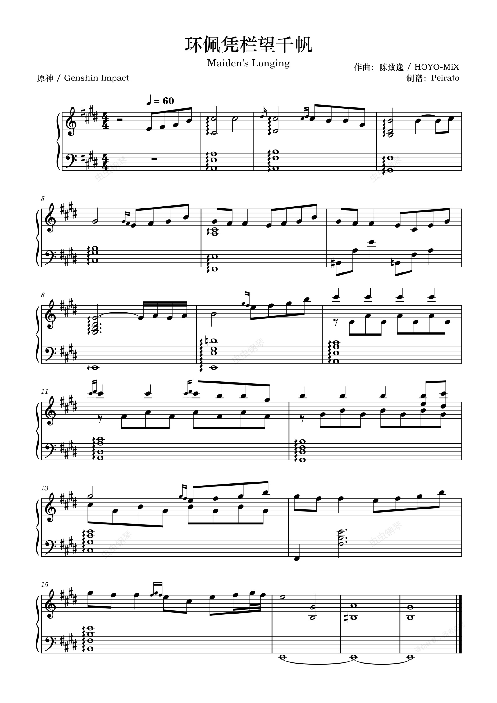 钢琴谱:原神-甘雨BGM-环佩凭栏望千帆-完美编配版