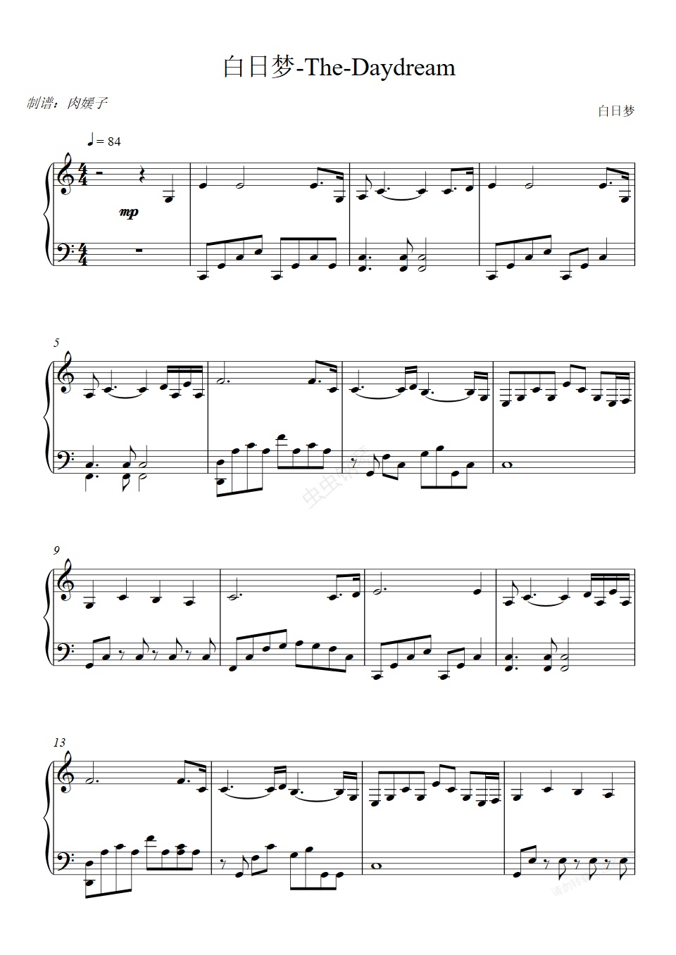 钢琴谱:【免费谱】白日梦-The-Daydream