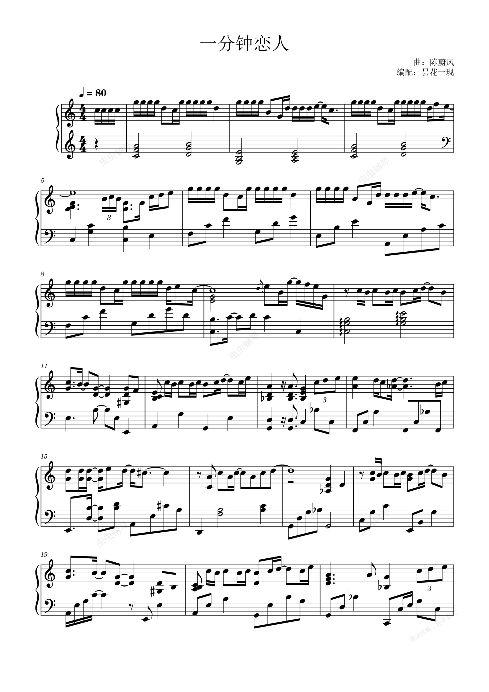 钢琴谱:一分钟恋人 GG!啵(独奏版)