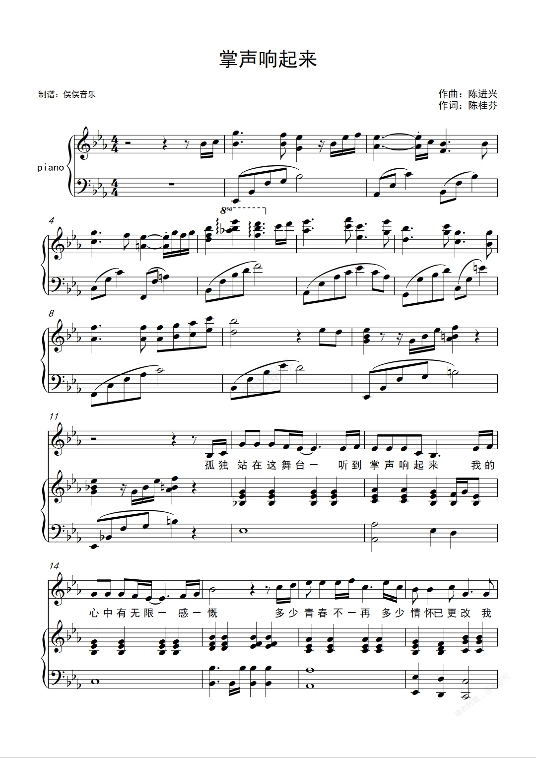 钢琴谱:掌声响起来(伴奏谱)
