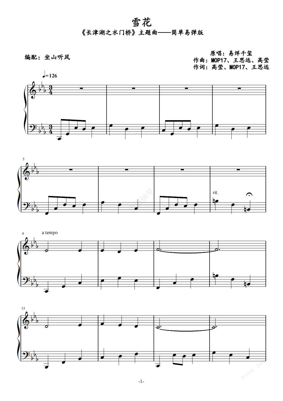 钢琴谱:雪花——《长津湖之水门桥》主题曲