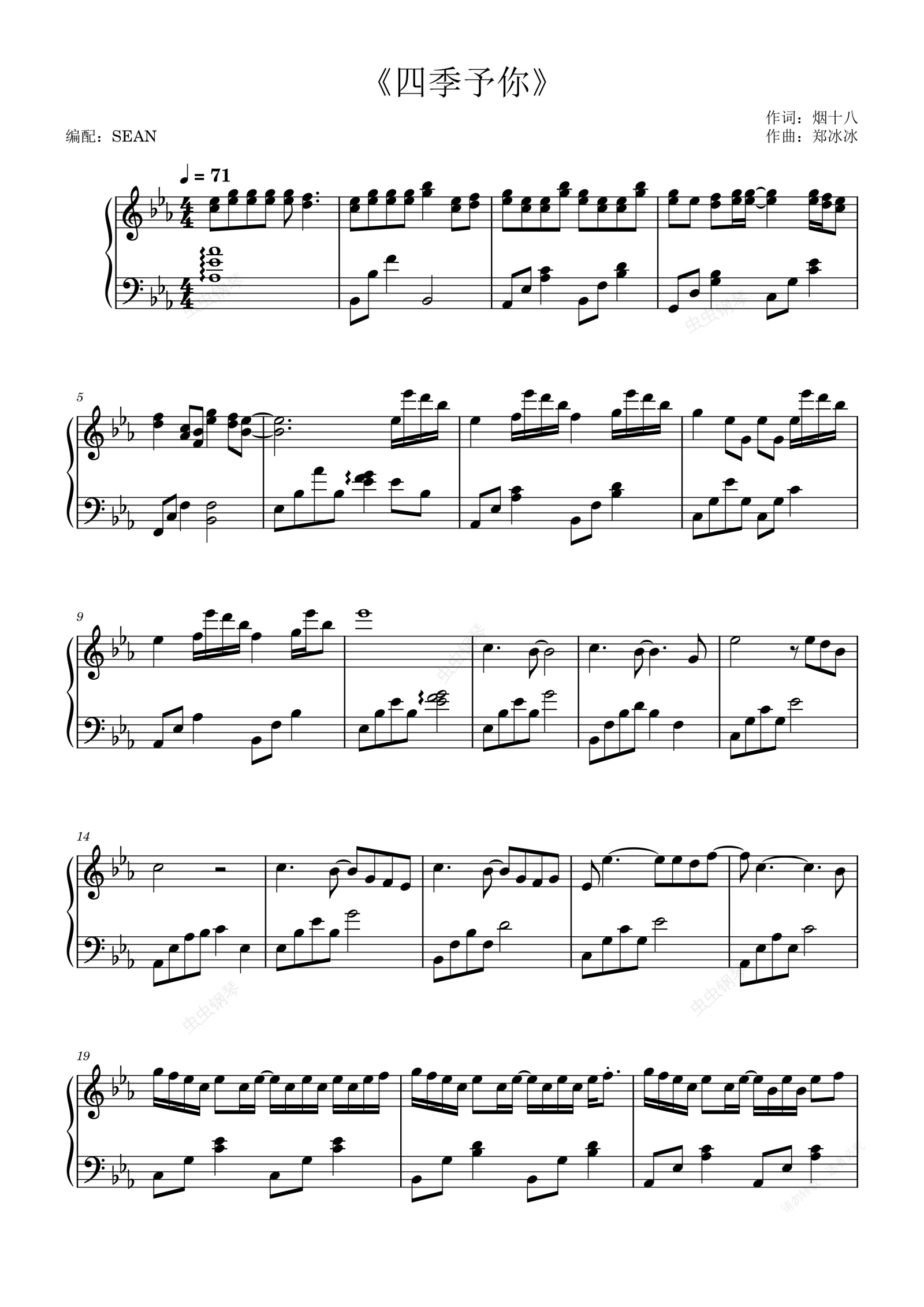钢琴谱:《四季予你》程响-Eb调 『 SEAN 编配 』唯美版