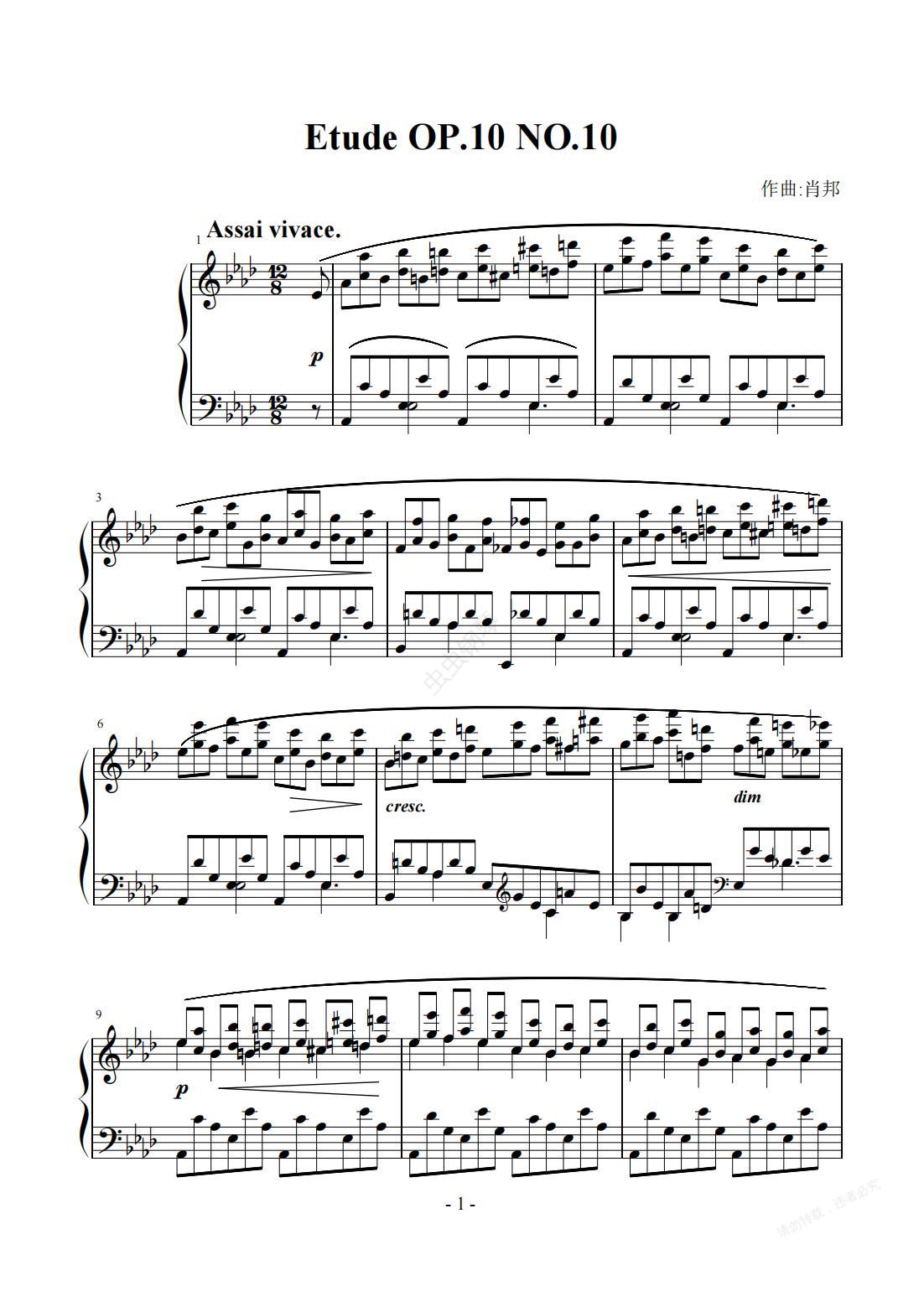钢琴谱:肖邦练习曲第十首