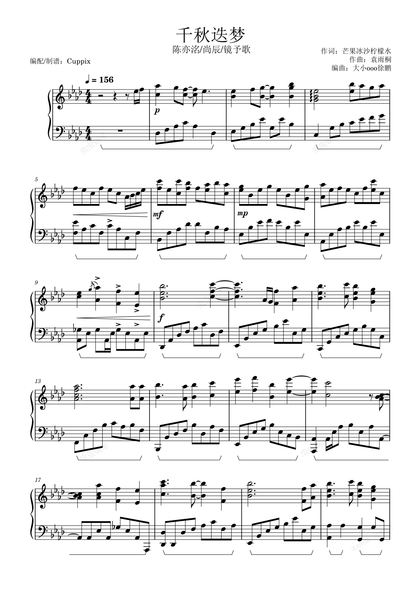 钢琴谱:《千秋迭梦》Cuppix编配-高度还原独奏版(陈亦洺、尚辰、镜予歌)