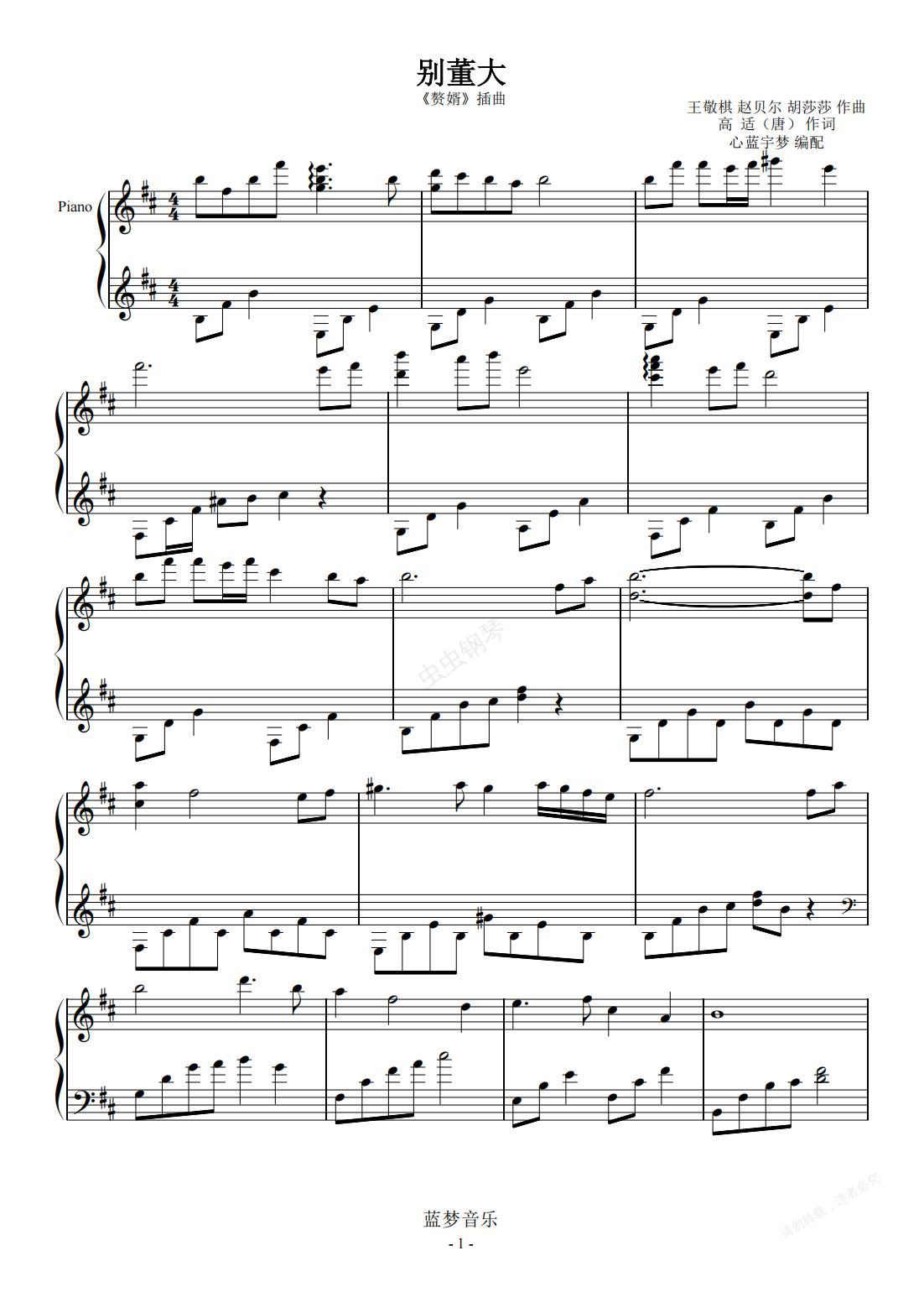 您的位置: 首页 > 钢琴谱库 > 别董大