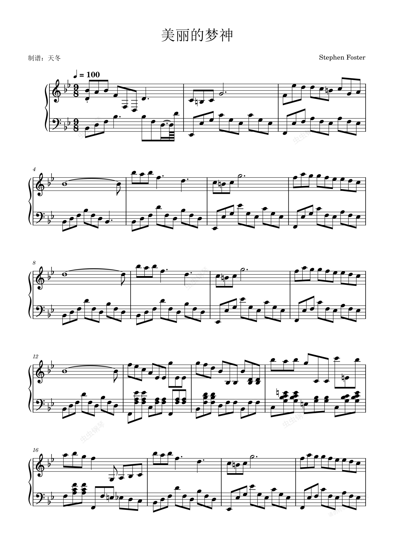 钢琴谱:美丽的梦神/Beautiful Dreamer
