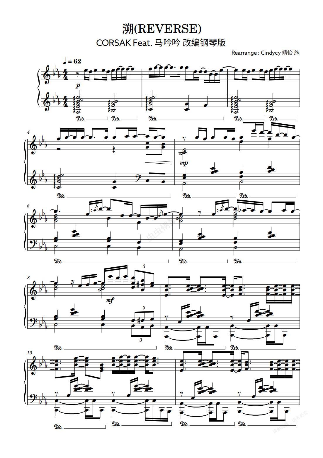 钢琴谱:溯(REVERSE) - CORSAK Feat. 马吟吟 改编钢琴版